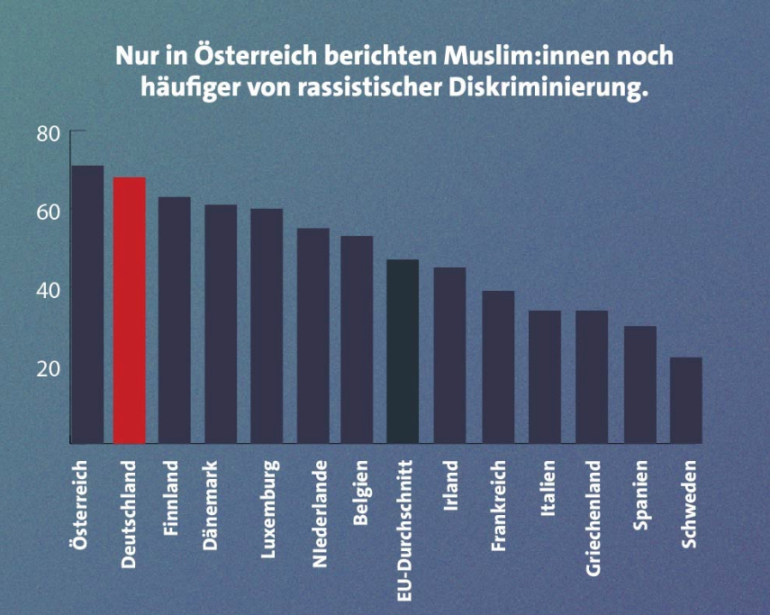 Laut der Studie der Europäischen Grundrechteagentur hatten in Österreich 66 Prozent innerhalb eines Jahres Diskriminierung erfahren, im Fünfjahresschnitt waren es sogar 74 Prozent - der höchste Wert unter den 13 EU-Ländern. Unter Befragten aus Subsahara-Afrika sogar 80%.