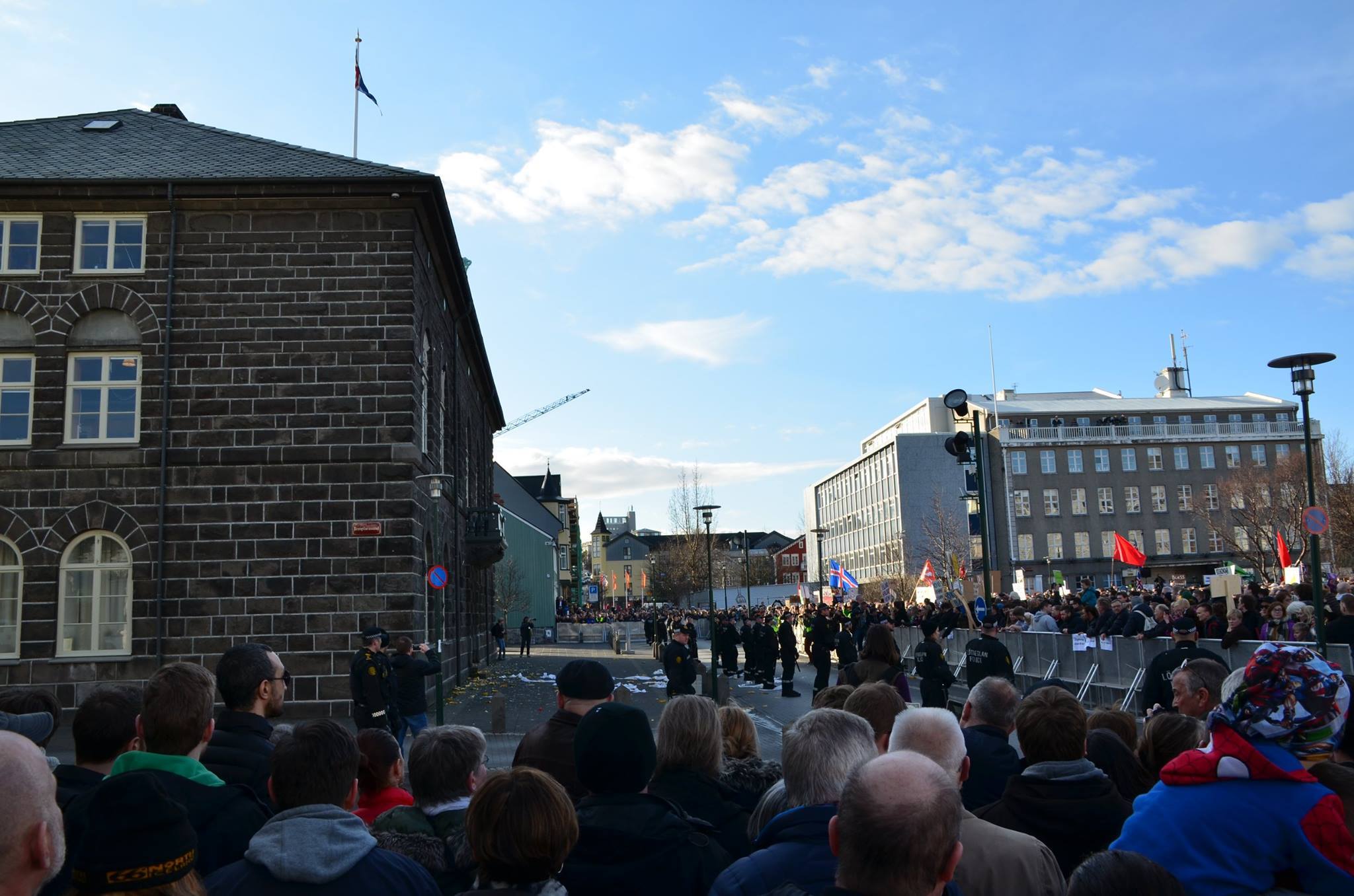So auch die Stimmung bei der Demonstration. Das Parlament wurde mit Bananen und Skyr (isländisches Joghurt) beworfen, was von der Polizei geduldet wurde. Die Demo verlief komplett friedlich.