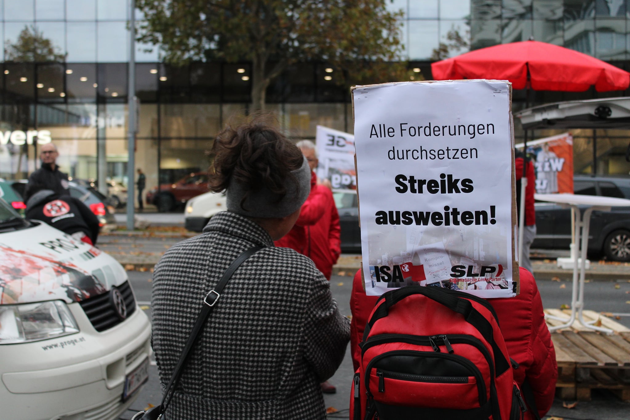 Die Firmen brauchen uns, weil wir den Reichtum schaffen. Es ist unsere Arbeit, die das ganze am Laufen hält. Streiken ist nicht lustig, nichts was wir gerne tun - aber streiken ist als Selbstverteidigung gegen die Angriffe auf unseren Lebensstandard absolut notwendig werden. Nichts gegen Verhandlungen, aber darauf beschränken können wir uns schon längst nicht mehr. Wir müssen jetzt anfangen, auf betrieblicher Ebene Streikkomitees aufzubauen, Kampfschritte vorzubereiten und uns mit anderen Betrieben zusammen zu schließen.