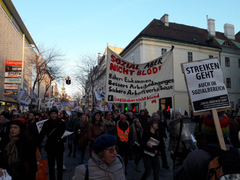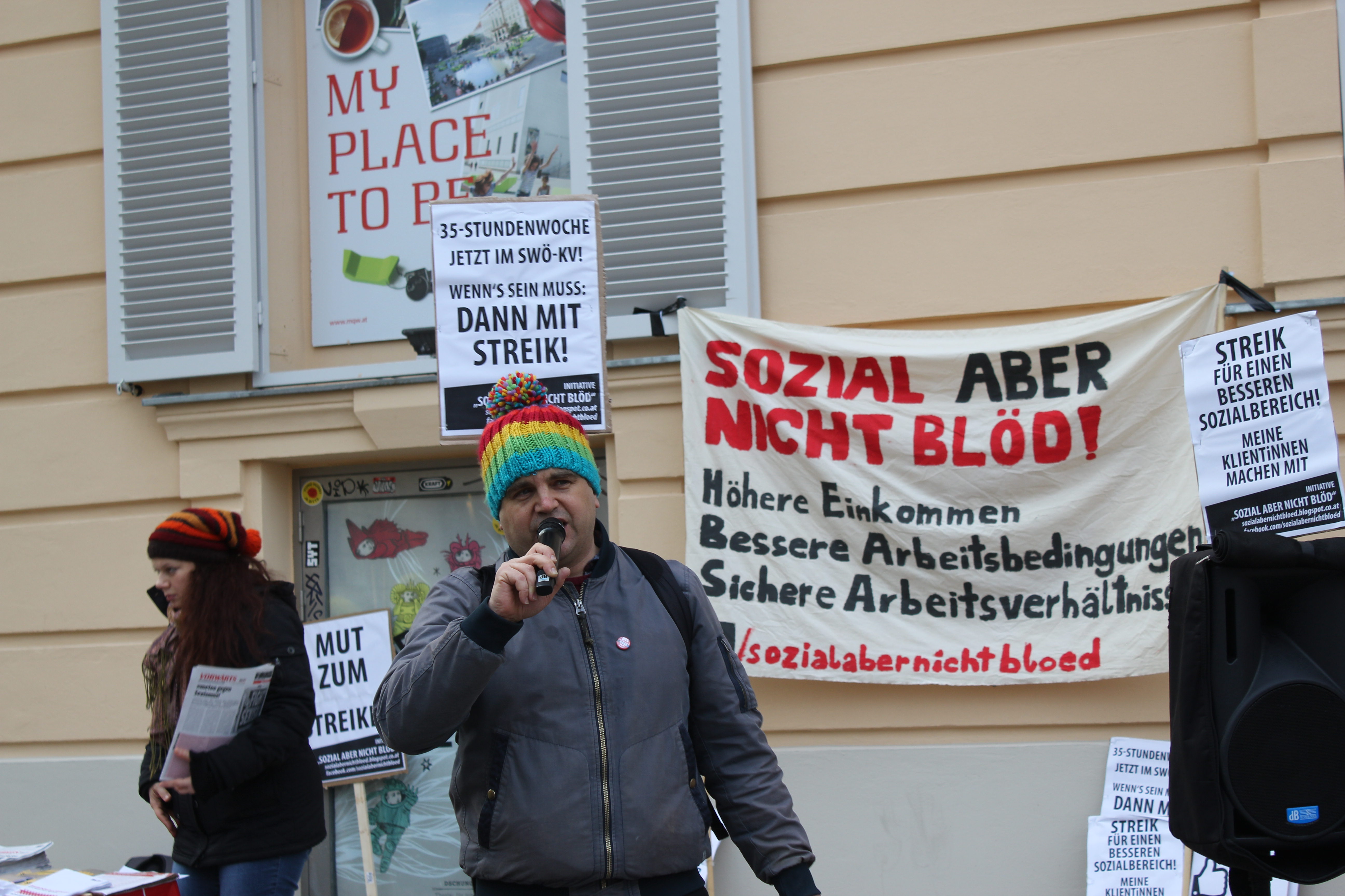 Grund für die Demonstration ist die Unterbrechung bei den Kollektivvertragsverhandlungen im SWÖ-KV (Sozialwirtschaft Österreich, früher BAGS). Die Arbeitgeber weigern sich, die Gewerkschaftsforderungen nach einer ordentlichen Lohn- und Gehaltserhöhung sowie einer 35-Stundenwoche bei vollem Lohn und Personalausgleich zu erfüllen. Dabei verdienen Beschäftigte im privaten Sozialbereich ohnehin schon deutlich weniger als der österreichische Durchschnitt und viele KollegInnen werden von den belastenden Arbeitsbedingungen ins Burnout getrieben.