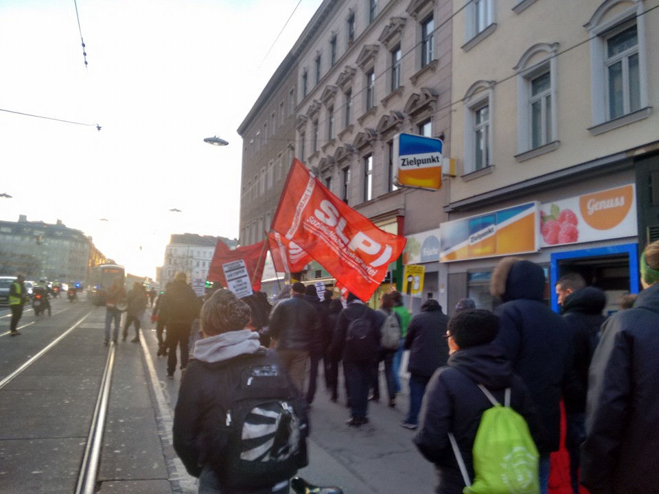 Die Demo der „Offensive gegen Rechts“, einem Bündnis dem die SLP auch angehört, konnte ca. 8.000 AntifaschistInnen mobilisieren. Die Demo unterstrich auch: Der „Akademikerball“ war nur der Anlass: Viele Slogans wendeten sich speziell gegen die Hetze gegen Flüchtlinge. Die Demo war trotz langer Route kämpferisch, laut und politischer als sonst. Unter anderem trug dazu auch Stefan Gredler bei, der für die SLP auf der Auftaktkundgebung eine Rede hielt. Er ging darauf ein, wie die rechte Hetze uns davon ablenken soll das bei uns allen, egal woher wir kommen, seit Jahren die Löhne gekürzt werden und durch Sparpakete bei Gesundheit, Sozialem und Bildung das Leben schwer gemacht. Was wir brauchen sind starke und kämpferische Gewerkschaften und eine neue Partei für und von ArbeiterInnen, die gemeinsam den Kampf gegen Sozialabbau und gegen Rechtsextremismus aufnehmen!