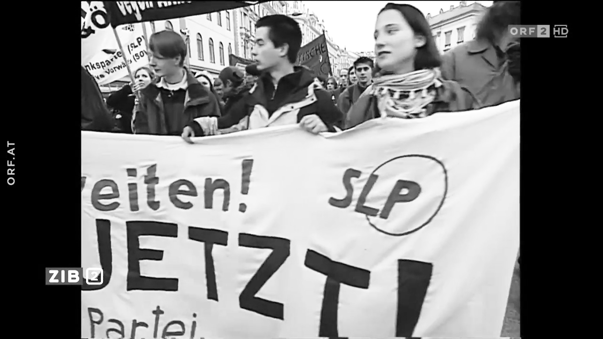 In einer Reportage über die aktuellen Donnerstagsdemos warf der ORF einen Blick auf die damaligen – und wer war schon damals ganz vorne dabei? Natürlich die SLP! Die Frisuren mögen sich geändert haben, doch unsere Überzeugungen sind noch dieselben: Damals wie heute kämpfen wir gegen Rassismus, Sexismus, Sozialabbau und das System das sie hervorbringt: den Kapitalismus.
