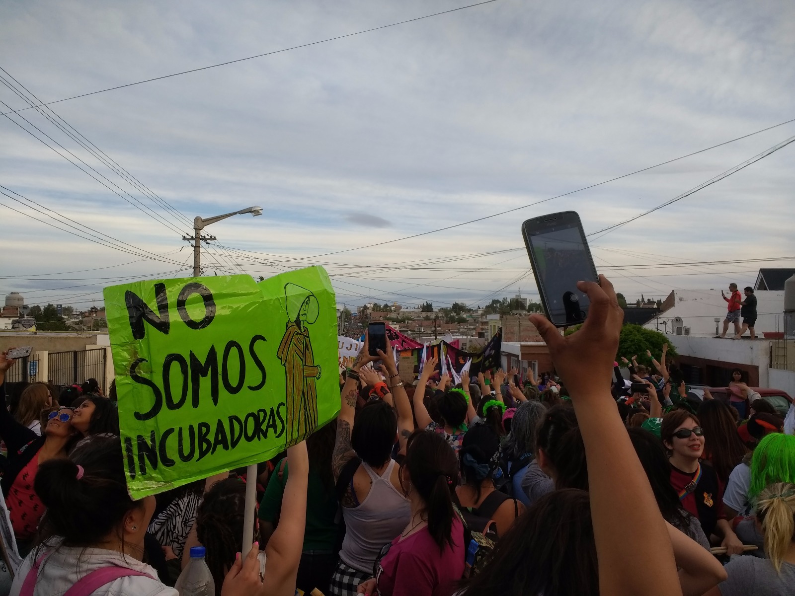 Bereits im Bus nach Trelew, einer Kleinstadt im argentinischen Teil von Patagonien, merkt man eine spezielle Stimmung. Am Busbahnhof angekommen sieht man sich Massen von Frauen in grün, der Farbe der Kampagne für die Legalisierung von Abtreibung, gegenüber. Kaum eine Frau hat kein grünes Pañuelo irgendwo an ihrem Körper oder ihrer Tasche befestigt. Das Pañuelo, das mit Tuch übersetzt werden kann, geht auf eine Gruppe von Frauen zurück (Madres de la Plaza de Mayo), die während der letzten Militärdiktatur gegen das Verschwinden ihrer Kinder protestiert haben.