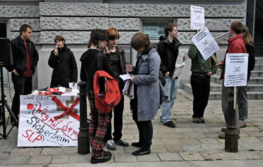 Wie die von der FPÖ initiierte Demonstration gegen den Moscheebau in Brigittenau am 13.9. gezeigt hat, ist es mehr als notwendig zu verhindern dass sich die extreme Rechte wieder, traut offen auf der Straße aufzutreten. Ein Vernetzungspunkt der harten Naziszene ist das von der AfP (Arbeitsgemeinschaft für demokratische Politik) betriebene Fritz-Stüber-Heim in der Koppstraße in Wien 16. Die Sozialistische LinksPartei und andere führen schon seit längerem eine Kampagne zur Schließung dieses Nazitreffpunkts.