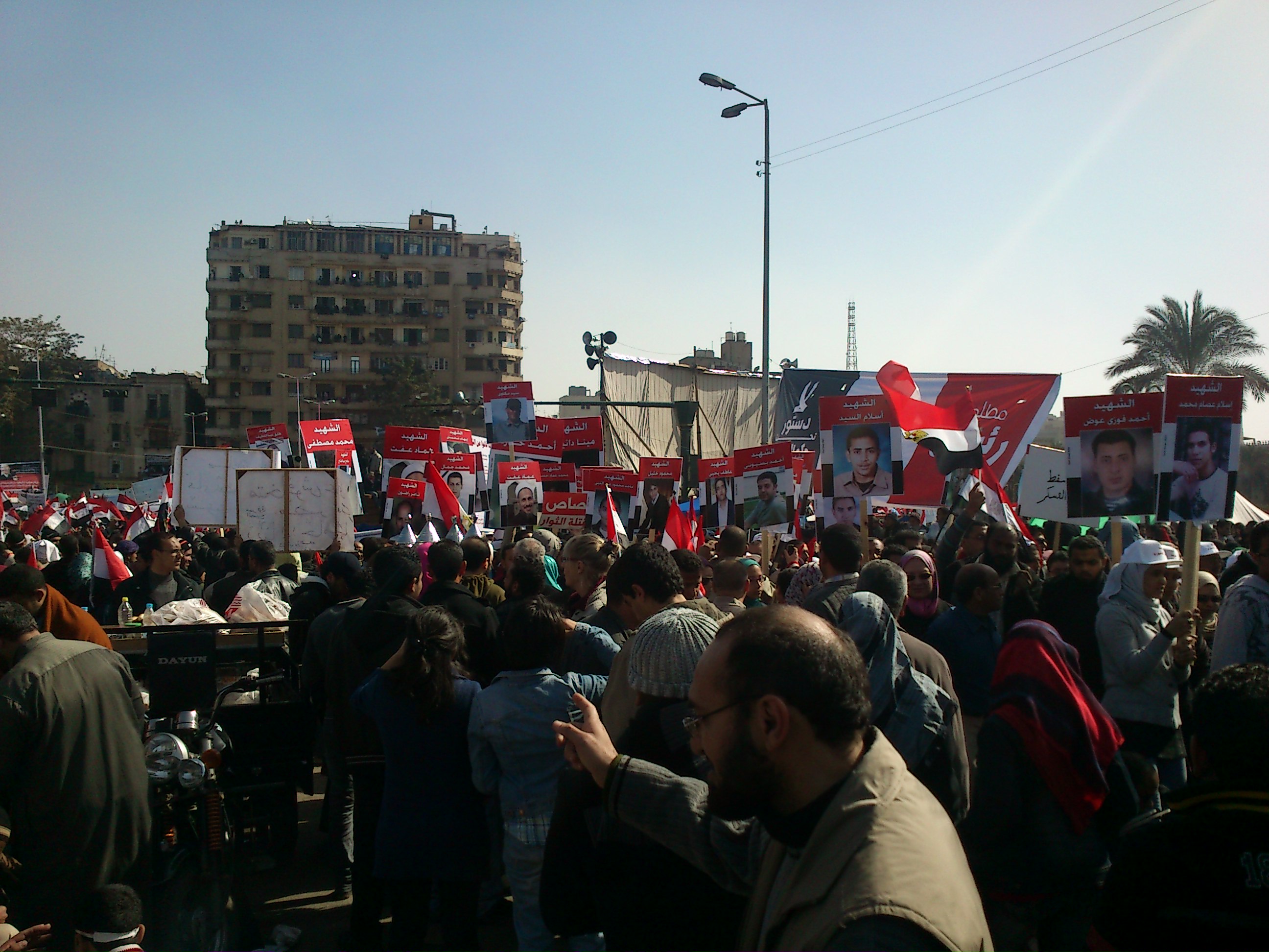 Kairo, 25.1.2012: Al Jazeera berichtete von einer unzählbaren Menschenmasse am Tahrir-Platz, der im Jänner 2011 zum Symbol der Revolution gegen das Mubarrak-Regime wurde. Seit den frühen Morgenstunden marschierten Menschen aus allen Teilen der Megacity zum Tahrir-Platz (dessen Name im Arabischen ‘Befreiung’ bedeutet). Um die Mittagszeit war der Platz so voll, dass es unmöglich war, ihn vom einen zum anderen Ende zu überqueren. Und nun – später Nachmittag in Kairo – sind es noch mehr Demonstrationszüge aus den abgelegeneren Teilen der Stadt. Viele der DemonstrantInnen, mit denen ich gesprochen habe, sagten dass es heute mehr Menschen sind als am Höhepunkt der Revolution letztes Jahr. Aber zurück zum Anfang: dem Beginn des ersten Jahrestages der Revolution.