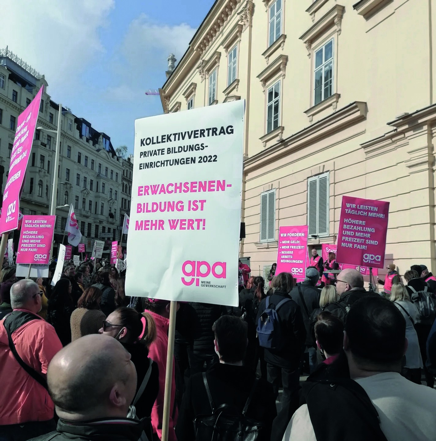 3,6% Lohnerhöhung, keine Verbesserungen bei Arbeitszeit und -bedingungen – das Ergebnis der KV-Verhandlungen im privaten Bildungsbereich (BABE) war für die 9.000 Beschäftigten,von denen viele am 26.4. Kampfbereitschaft erklärt hatten, ein Schlag ins Gesicht. Am 18.5. passierte jedoch, was auch in anderen Bereichen nötig ist: Die Basisinitiative Deutschlehrende in der Erwachsenenbildung (DiE) organisierte eine Veranstaltung, bei der Vertreter*innen des kleinen Verhandlungsteams sowie der Gewerkschaft GPA Rechenschaft ablegen sollten – dass sie kamen, zeigt, dass sie den Druck der Basis spüren. Anwesend waren auch Kolleg*innen des großen Verhandlungsteams, die gegen den Deal gestimmt hatten, sowie kämpferische Beschäftigte aus mehreren Betrieben. Moderiert und mitorganisiert wurde das Ganze vom ISA-ler Sebastian Kugler. Zentral war die Debatte, wie heute – mit ständig neuen Krisen – Verbesserungen bei KV-Verhandlungen erreicht werden können. Dass sich die Unternehmen von guten Argumenten nicht überzeugen ließen, ließen die Kolleg*innen nicht gelten – bei KV-Verhandlungen gehts letztlich um Stärke. Und die muss man aufbauen. Am Ende stimmten sogar die Vertreter*innen von kleinem Verhandlungsteam und Gewerkschaft zu, dass man sich streikbereit für die nächsten Verhandlungen machen müsse - damit diesen Worten auch Taten folgen, wird es noch mehr Druck von unten brauchen.