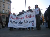 Vor der Bundesparteizentrale der SPÖ gab es eine Abschlusskundgebung, bei der ein Schüler, der Aktivist der SLP ist, betonte, dass die SPÖ, jene Partei, die jetzt so scheinheilig gegen das Asylrecht protestiert, damals für die Einführung dieses rassistischen Gesetzes gestimmt hat.