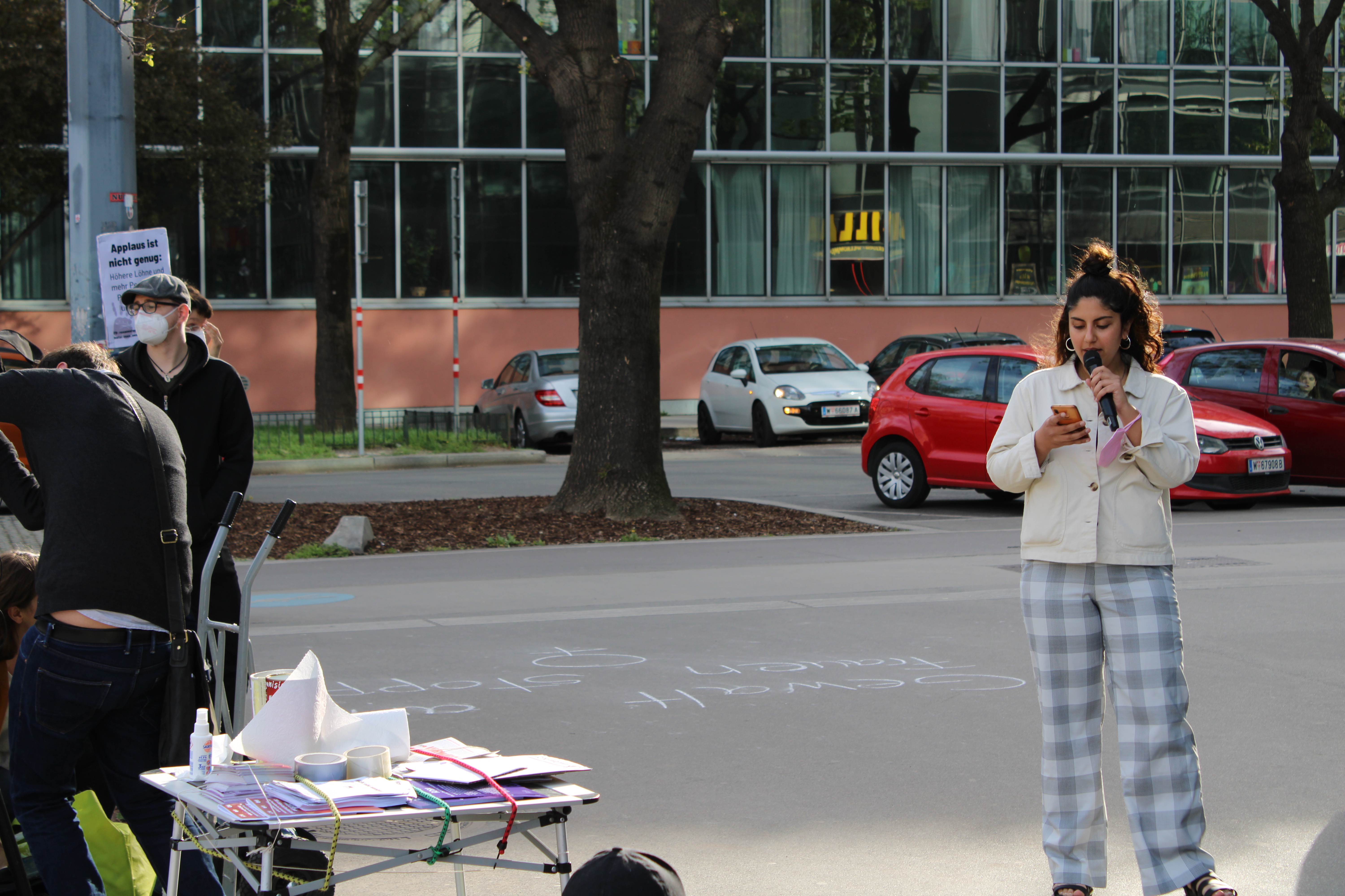 Das war nur ein erster Schritt, wir werden weitermachen: Komm zu unserem nächsten Aktivist*innentreffen diesen Freitag, 7.5. um 18 Uhr, online (Zugangsdaten auf Anfrage). Dort werden wir auch Folgeaktionen planen und besprechen, wie wir den Protest gegen Gewalt an Frauen im 20.Bezirk und darüber hinaus ausweiten können. Schreib uns eine Nachricht, wenn du mit uns aktiv werden möchtest!