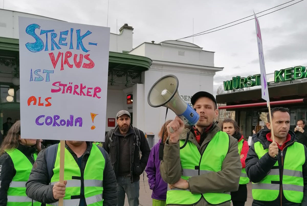 Nur wenige Stunden vor Beginn des Streiks im Sozialbereich hat die Regierung ein hartes Maßnahmenpaket beschlossen, das zur Eindämmung des Coronavirus dienen soll. Unter anderem sind alle Veranstaltungen im Freien mit 500 Teilnehmer*innen und drinnen mit 100 Teilnehmer*innen untersagt, außerdem wird der Lehrbetrieb an Universitäten und Fachhochschulen eingestellt. Die Kolleg*innen im Sozialbereich sind zurecht empört darüber, dass ihr Protest abgesagt wird, während gleichzeitig in öffentlichen Verkehrsmitteln, Einkaufsstraßen und Arbeitsplätzen deutlich mehr Personen in Kontakt miteinander stehen.