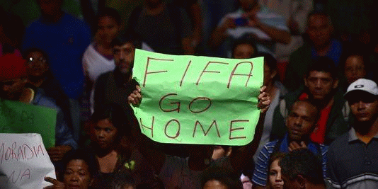 Um die Unterstützung der Bevölkerung für die WM zu gewinnen, wurde der Ausbau des öffentlichen Verkehrs, bei dem viel im Argen liegt, versprochen. Doch als die Bauarbeiten die Zeitpläne nicht einhalten konnten waren genau das die ersten Projekte, die gestrichen wurden. Tausende wurden aus ihren Wohnungen in den Favelas vertrieben und paramilitärische “Befriedungs”einheiten haben arme, v.a. schwarze Stadtteile terrorisiert.