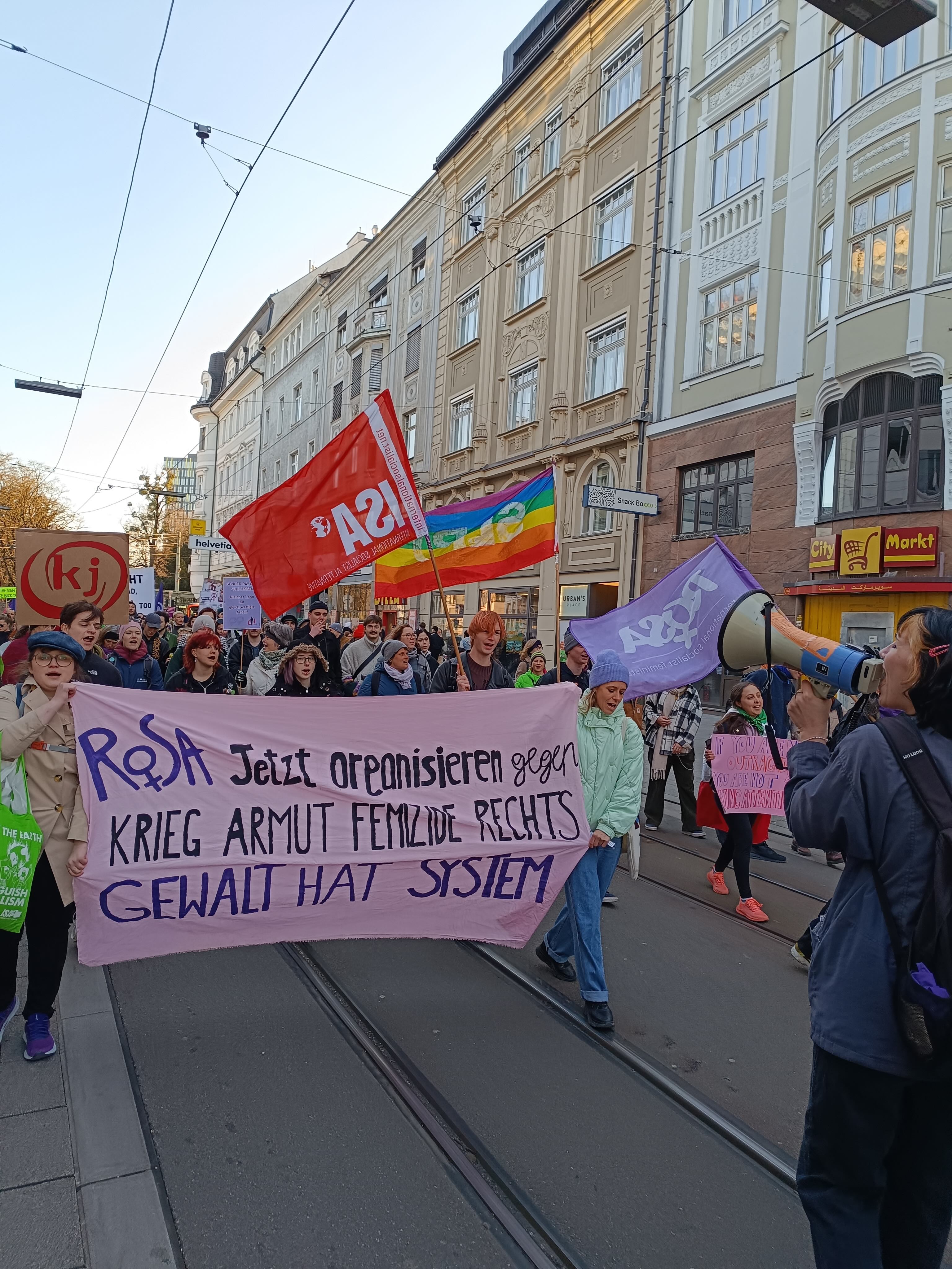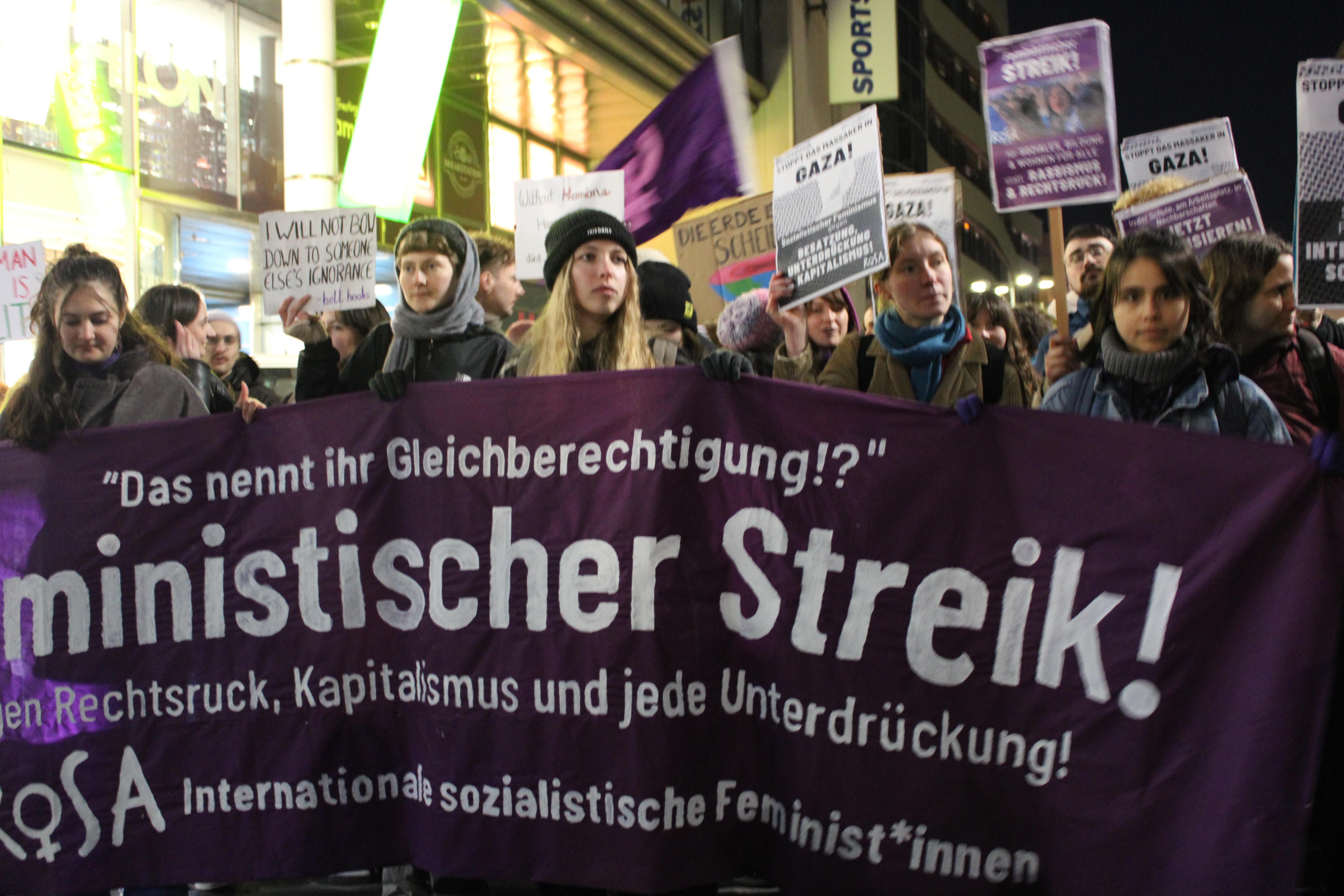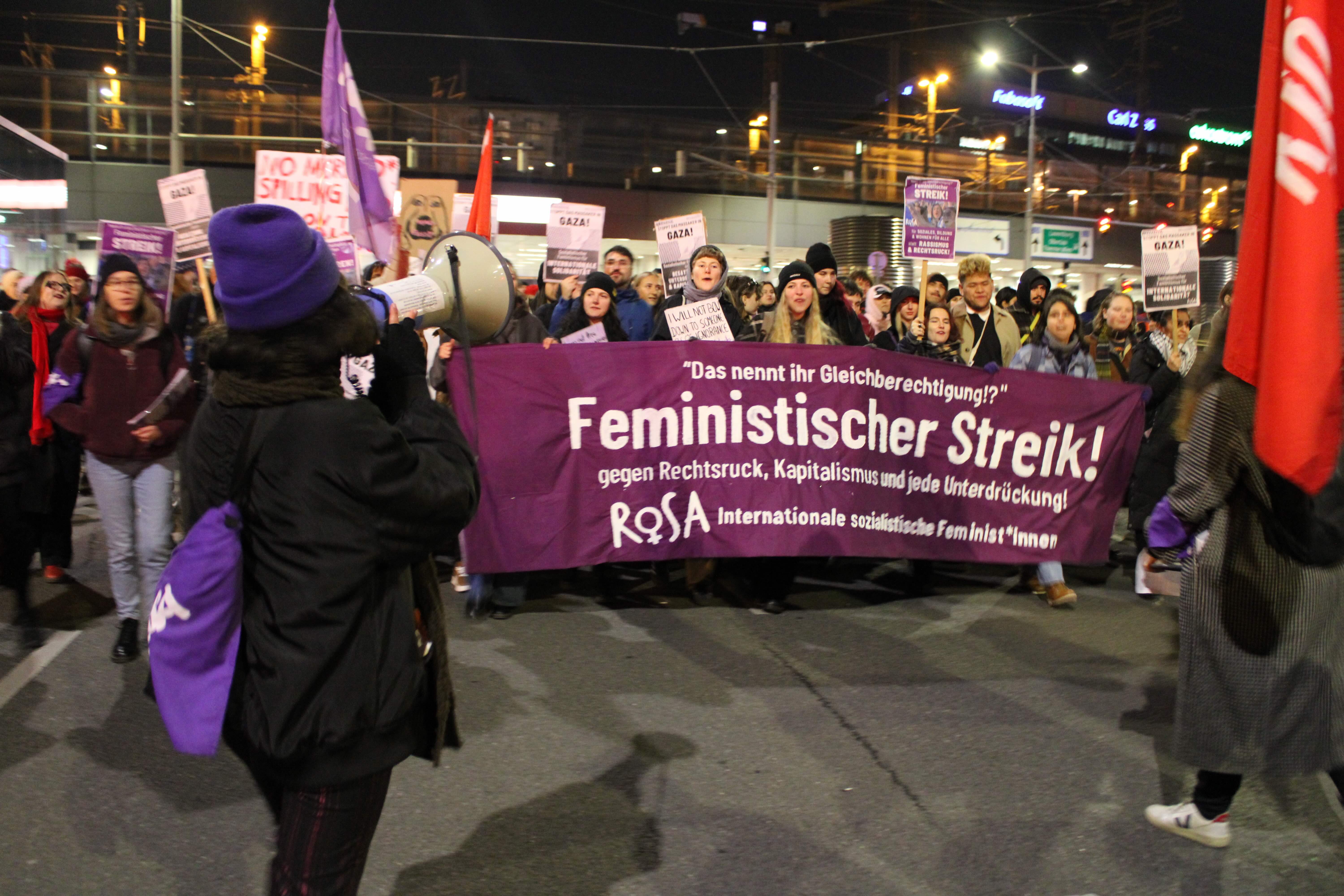 Wien: Hunderte nahmen an den öffentlichen Betriebsversammlungen organisiert von mehreren Betriebsrät*innen, aktiven Beschäftigten und Initiativen aus dem Sozialbereich (wie "Wir sind sozial aber nicht blöd.") teil, 3x so viele wie letztes Jahr. Ein unglaublich wichtiger Schritt Richtung feministischer Streik, besonders in den Care-Sektoren! Auf der Demo von "Take Back The Streets - Jeden Tag 8. März" waren über 10.000 Menschen - Wir hatten einen sehr lauten & großen ROSA-Block mit Sprüchen wie „Lasst Gaza leben, lasst Gaza frei“ - Palästina ist ein feministisches Thema & Feminismus geht nur international gegen jede Unterdrückung, gegen Femizide, Rassismus & Rechtsruck. Wir werden unseren Kampf für einen feministischen Streik gegen die Gefahr von FPÖVP fortsetzen!