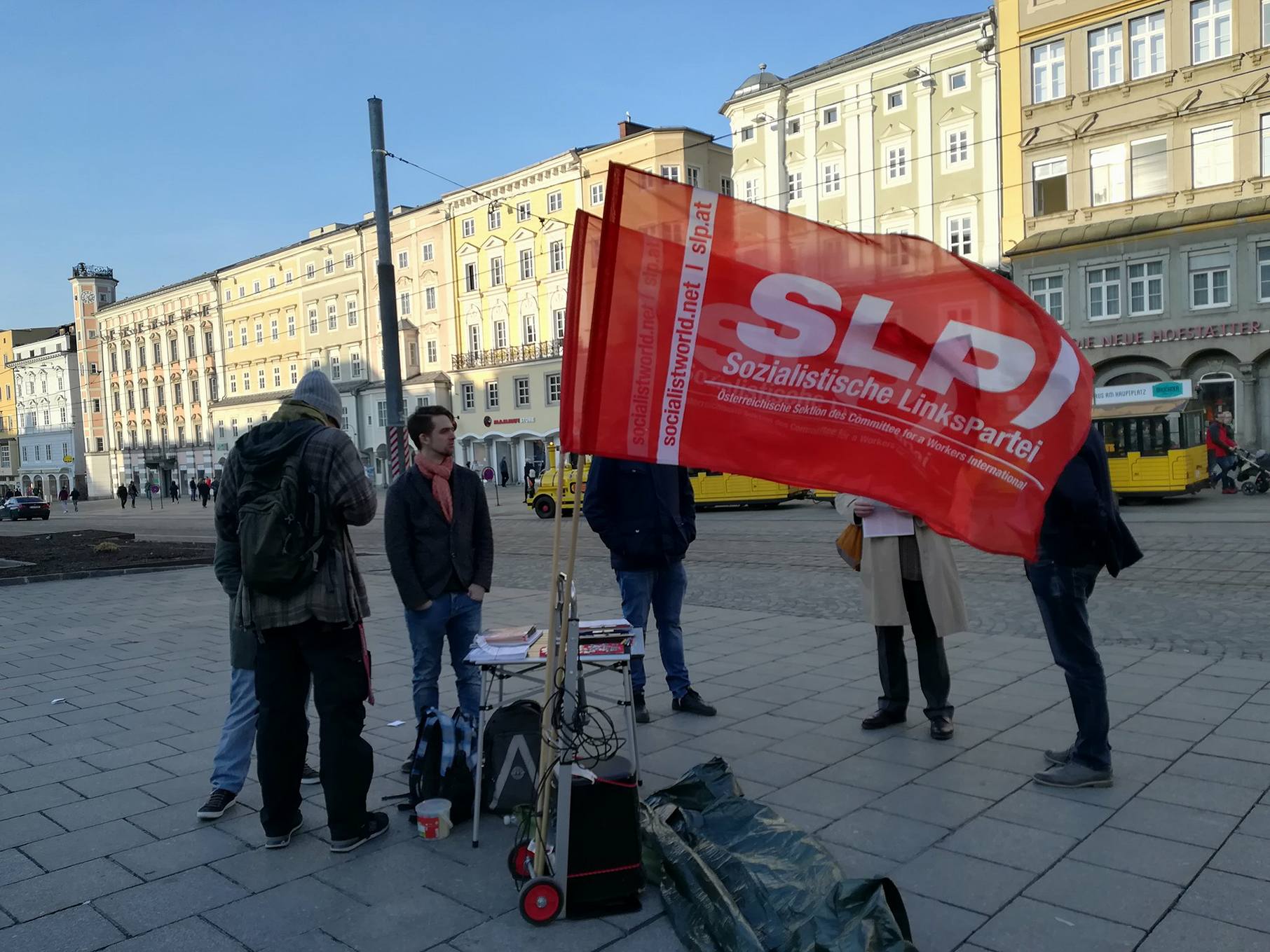 Manuel Schweiger, SLP-Aktivist in Linz, machte in seiner Rede auf der Demonstration klar: