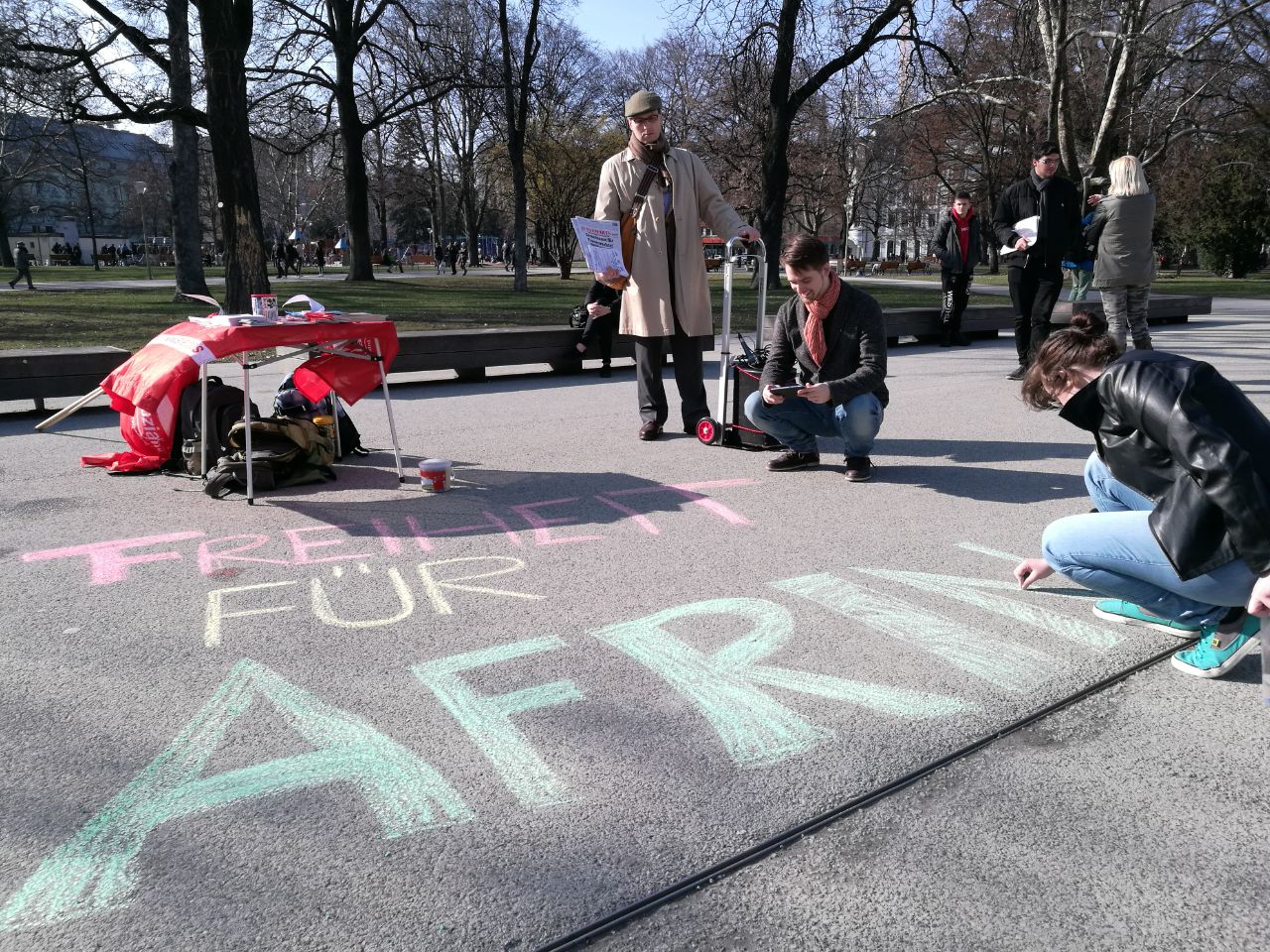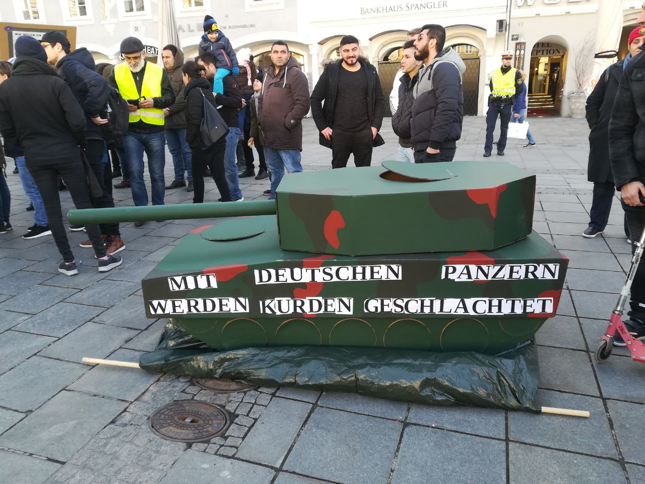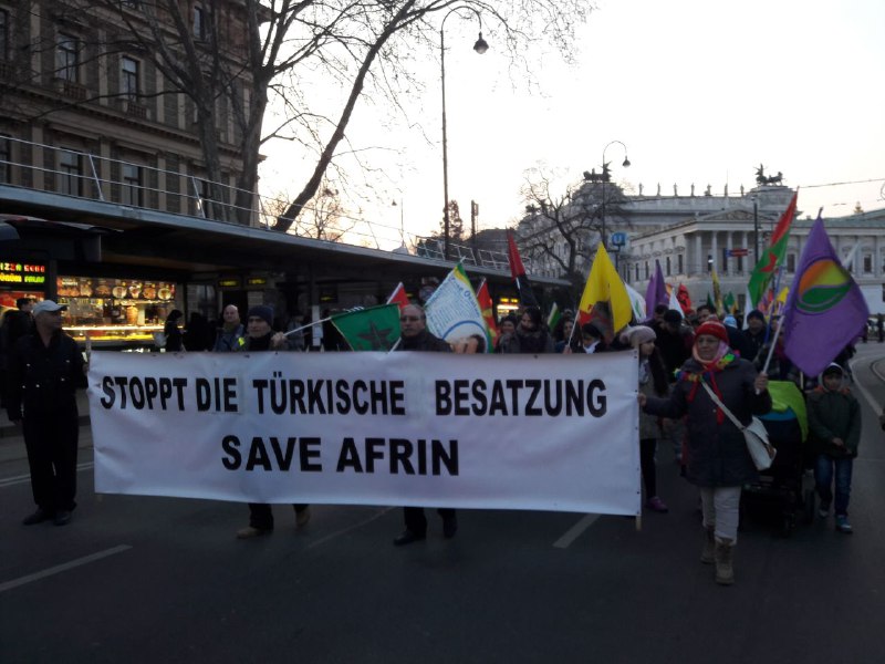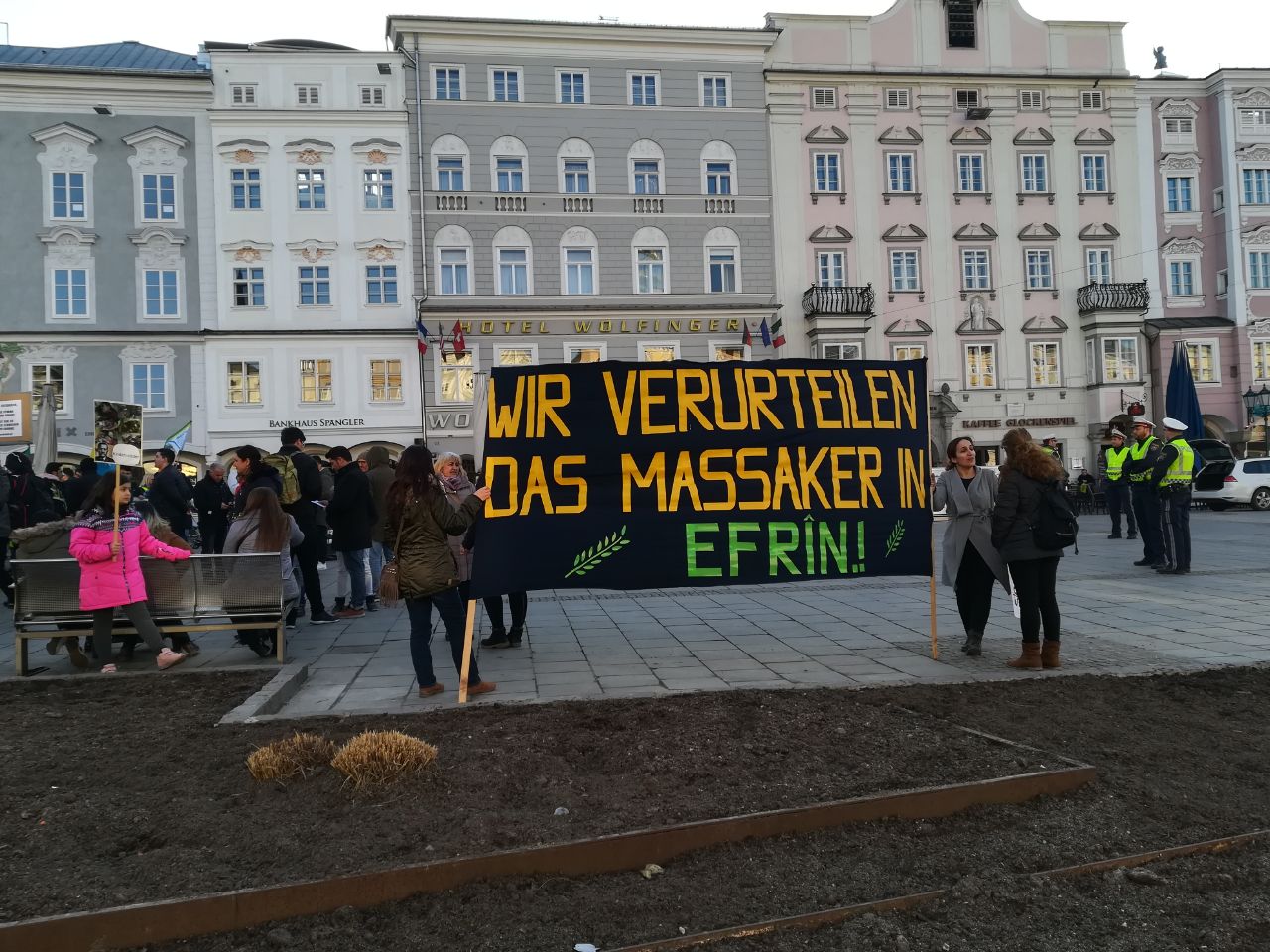 Ebenso haben wir haben offen und laut das Verhalten von EU, NATO und der österreichischen Regierung an den Pranger gestellt: 90 Prozent der, gegen die Bevölkerung Afrins, eingesetzten Waffen, stammen aus dem Westen, allem voran aus Deutschland.