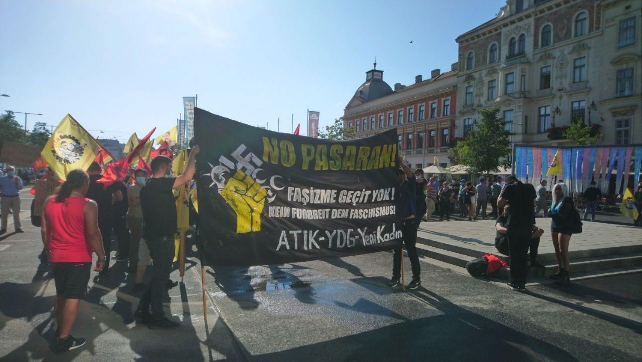 Die Grauen Wölfe gelten als Kern des türkischen Rechtsextremismus. Ihr Erkennungszeichen sind drei Halbmonde, die Viele auch als Kette tragen. Sie sind verbunden mit der „Partei der Nationalistischen Bewegung“ (MHP), die größte rechte Opposition gegen die AKP. Sie sind aber deutlich radikaler und gewaltbereiter. Mit Morden an KurdInnen, AlevitInnen und Linken verbreiteten sie besonders in den 90er Jahren, aber bis heute Terror auch in Österreich. Besonders in Deutschland und Österreich sind die Wölfe in sogenannten „Idealistenvereinen“ präsent, die jedoch oft nicht als rechtsextrem erkannt werden. Im Gegenteil: offiziell als Sport- und Kulturvereine geführt, werden sie sogar staatlich mitfinanziert. Täglicher Rassismus und Perspektivlosigkeit führen bei vielen, gerade jüngeren MigrantInnen zu einer gefährlichen Radikalisierung: Auf einer Demo in Wien 2011 wurde ein Kebap-Geschäft der Türkis Kette angegriffen, weil die Besitzer Kurden sind. 2013 fanden Solidaritätsdemos zu den Taksimplatz-Protesten unter anderen in Salzburg statt. Auch dort fand man Graue Wölfe, die die kurdischen und/oder linken TeilnehmerInnen provozieren wollten. Im März desselben Jahres wurde in Hannover ein kurdischer Infostand angegriffen. Diesen März tauchte ein Rapsong aus Ried auf Youtube auf, in dem junge Graue Wölfe mit Pistolen posieren. Im April gab es eine Großveranstaltung im Gasometer in Wien, organisiert von der MHP-nahen Avusturya Türk Federasyon (ATF). Außenstehenden wurde der Zugang verweigert.