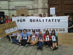 "Das erste Banken"rettungs"paket fasste 10 Milliarden €, das reichste 1% der Bevölkerung besitzt 470 Milliarden! Die Politik hat genug Geld, um es Banken, Konzernen und Superreichen nachzuwerfen, aber nicht für Bildung? 10 Milliarden für Bildung und Soziales, jetzt!" - Sebastian Kugler, Lehramtsstudent