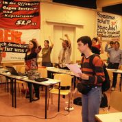 Am 8. und 9. September fand die Konferenz der SLP statt. Seit der letzten im Februar 2011 hat sich viel getan. Wir sehen weltweit eine Verschärfung von Klassenkämpfen. Die Krise hat sich weiter verschärft und kommt auch nach Österreich. Keine der bürgerlichen Regierungen Europas oder der USA etc. haben Antworten darauf. In Österreich hat die Krise zwar noch nicht voll eingeschlagen. Doch durch die starke Exportabhängigkeit und das Engagement österreichischer Banken in Osteuropa, kann sich dies schnell ändern. Bereits seit 30 Jahren wird der Lebensstandard von ArbeiterInnen herabgesetzt. Privatisierungen und Erhöhung des Arbeitsdrucks gehört zum Alltag. 2011 wurde das härteste Kürzungsprogramm der 2. Republik beschlossen. Ein Korruptionsskandal jagt den nächsten. Die Unzufriedenheit der Bevölkerung drückt sich darin aus, dass 40% vorhaben 2013 nicht zu wählen.