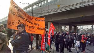 Samstag, 28.2.2015: Eine erfolgreiche Aktion gegen die "Identitären" in Wien 22 (Kagran). Sie haben groß ein "europaweites" Treffen angekündigt. Das magere Häufchen TeilnehmerInnen sah sich dann allerdings an ihrem Treffpunkt einer Kundgebung von weit mehr AntifaschistInnen gegenüber. Zur Kundgebung hatte die OGR aufgerufen, die SLP hatte Anmeldung und auch viel Praktisches vor Ort übernommen. Während die antifaschistische Kundgebung viel positiven Zuspruch von PassantInnen erhielt, verschanzten sich die Identitären zuerst hinter der Polizei, dann flüchteten sie aber rasch in einen Bus. Sie waren allerdings so wenige, dass sie nicht einmal den ganzen Bus füllten (Beileid an die anderen Fahrgäste die sich den Bus mit den rechten Hetzern teilen mussten). Auch wenn die Handvoll Burschis eher lächerlich rüberkam sollten wir uns davon nicht täuschen lassen - ihre Ideologie ist brandgefährlich und nicht zufällig sind sie auch Teil der Pegida-Demonstrationen von denen brutale Gewalt gegen Linke und MigrantInnen ausgeht. In diesem Sinne: Kein Fussbreit den Identitären!