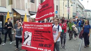 Der Kapitalismus ist in der Krise. Um die Wettbewerbsfähigkeit zu erhöhen, muss die Ausbeutung der Beschäftigten erhöht werden. Durch Rassismus soll Widerstand gegen erhöhten Arbeitsdruck und niedrigere Löhne gespalten und damit geschwächt werden. Die Ideologie von „Volk“, „Nation“ oder „Identität“ soll von den Klassengegensätzen zwischen ArbeiterInnen und UnternehmerInnen ablenken. Der Front National ist gegen die aktuellen Proteste in Frankreich (siehe Seite 12). Obwohl 60% ihrer WählerInnen den Widerstand befürworten, bezeichnet z.B. die Nichte von Marine le Pen (selbst Abgeordnete) die Menschen als „Randalierer“. Die FN unterstützt die Polizei, die mit äußerster Gewalt auf die Demonstrationen einprügelt – und zeigt so ihr wahres Gesicht. Auch in Österreich kann man eine Verbindung zwischen Klassenkampf und dem Kampf gegen Rechts ziehen. So war auf dem Höhepunkt des Widerstandes gegen die schwarz-blaue Regierung (2003) das streikreichste Jahr seit 1945 und bei starken gesellschaftlichen Bewegungen wie Unibrennt oder bei größeren Klassenkämpfen wie den Metallerstreiks ist die FPÖ in die Defensive gedrängt. Sie traut sich erst wieder in die Offensive, wenn diese Bewegungen abflauen bzw. als Niederlage enden.