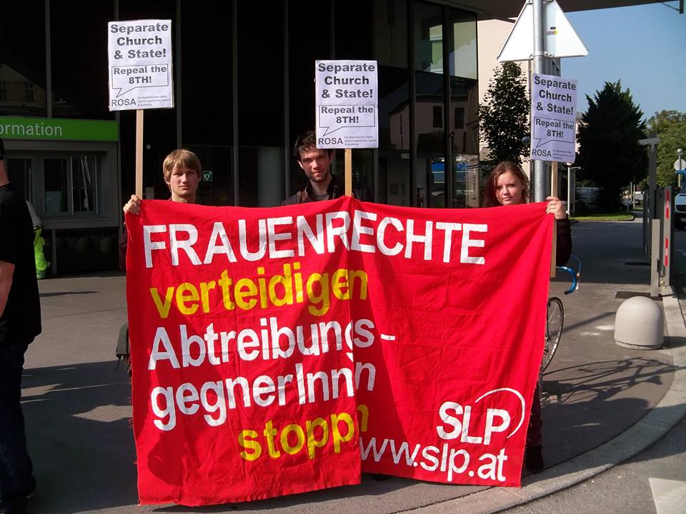 Auch in Wien beteiligten sich SLP-lerInnen an einer Protestkundgebung vor dem irischen Konsulat. Die Rednerin der SLP verwies auf die Situation in Österreich, wo Abtreibung nur in wenigen Spitälern und teuer durchgeführt werden. Dass Frauen zu Gebärmaschinen degradiert werden, findet sich auch im katholischen, rechts-konservativen Österreich wieder: "Die irische Rechtsordnung bezüglich Abtreibung sollte allen EU-Mitgliedsstaaten Vorbild sein." (Ewald Stadler; Ex-BZÖ, jetzt Rekos).