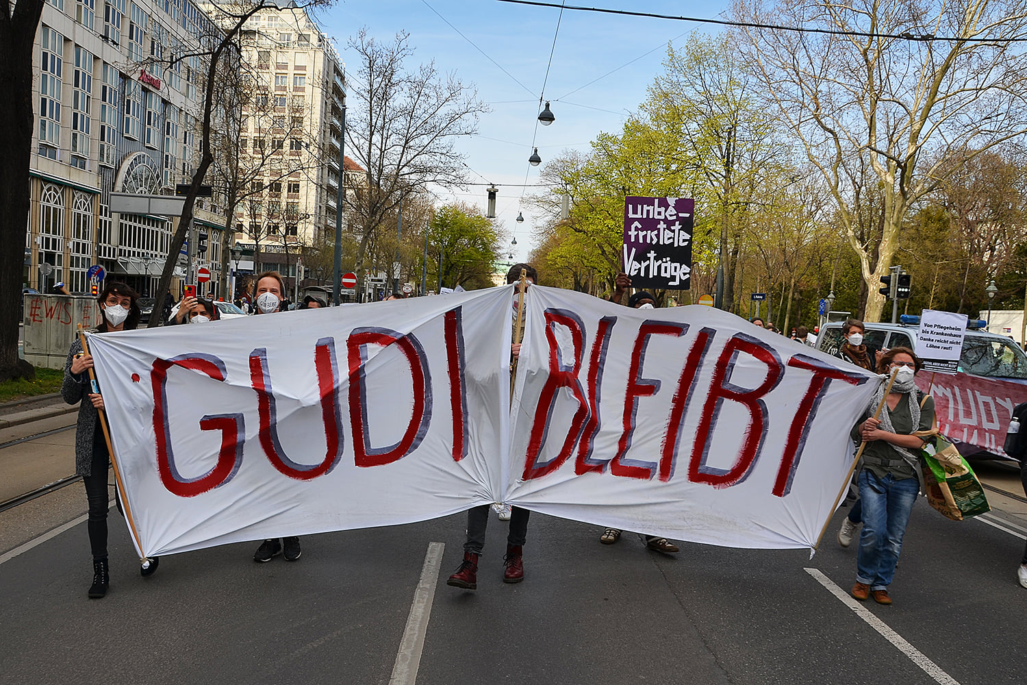 Die Regierenden haben Milliarden aufgebracht, um Konzernen trotzt Corona-Krise ihre Profite zu sichern. Wir können davon ausgehen, dass sie dieses Geld in den nächsten Jahren unter anderem bei Beschäftigten, aber auch Klient*innen und Patient*innen im Gesundheits- und Sozialbereich wieder reinholen wollen. Gleichzeitig steigt die gesellschaftliche Anerkennung aber auch einfach der Bedarf immer weiter an. Dieser Widerspruch wird die Grundlage für zahlreiche Auseinandersetzungen sein. Umso wichtiger ist es, dass wir die Erfahrungen aus dem Kampf um die Notschlafstelle Gudrunstraße und dem ersten größeren wilden Streik seit längerem nützen und als Inspiration und Grundlage für kommende Kämpfe nehmen.