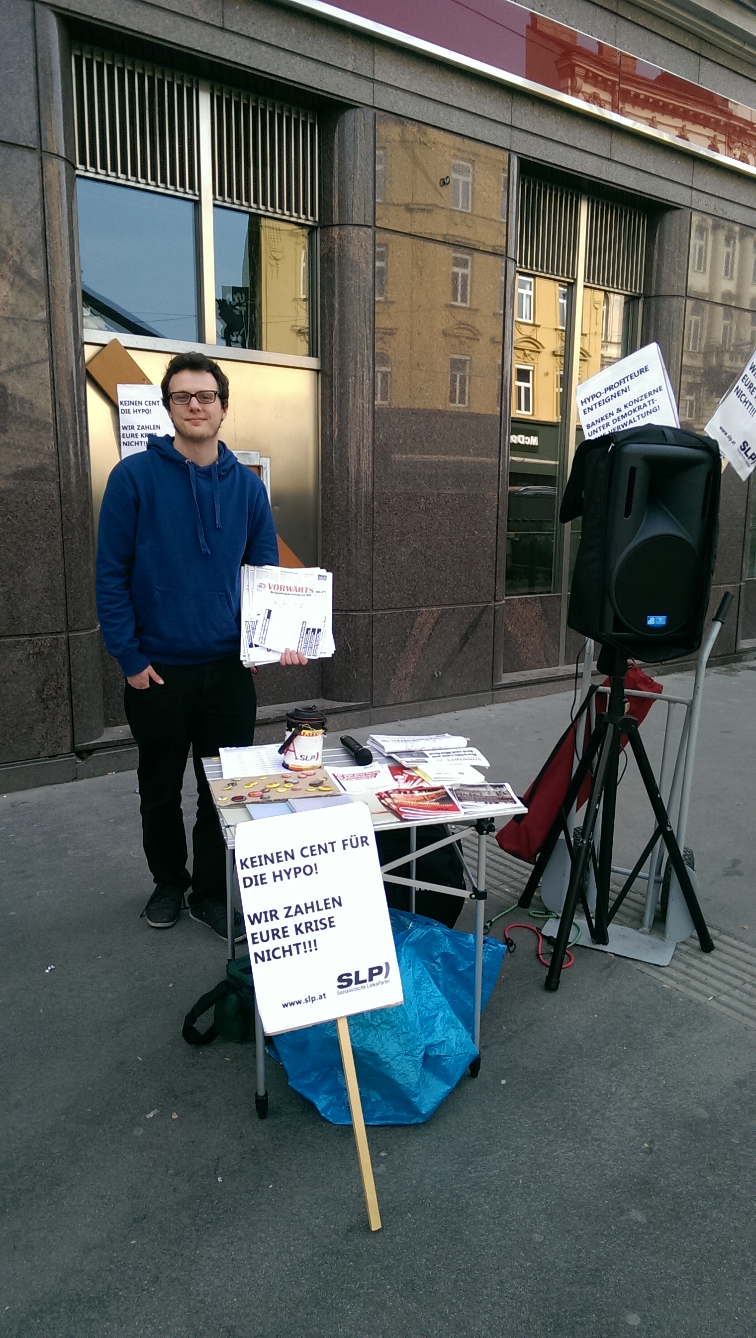 Nein zur Staatshaftung, bei der wir alle für die Hypo zahlen sollen. Doch die Bank in die Insolvenz schicken ist auch keine Lösung. Das bringt enormes Gefahrenpotenzial mit sich, v.a. für die KleinanlegerInnen. Denn in vielen Staaten im Osten gibt es keine Einlagensicherung. Das bedeutet, dass bei einer Hypo-Insolvenz z.B. bosnische KleinsparerInnen ihr Geld verlieren würden. Sie können genausowenig für den Bankrott der Hypo wie die Hypo-Beschäftigten. Ein Bankrott kann eine weitere Wirtschaftskrise samt Firmenpleiten und Stellenabbau auslösen. Lösung gefällig? Eine echte Übernahme durch den Staat, mit demokratischer Verwaltung durch KleinkundInnen, Beschäftigte und Gewerkschaften. Keinen Cent für SpekulantInnen und die Profiteuere – im Gegenteil, deren Konten einfrieren und für die KleinsparerInnen verwenden.