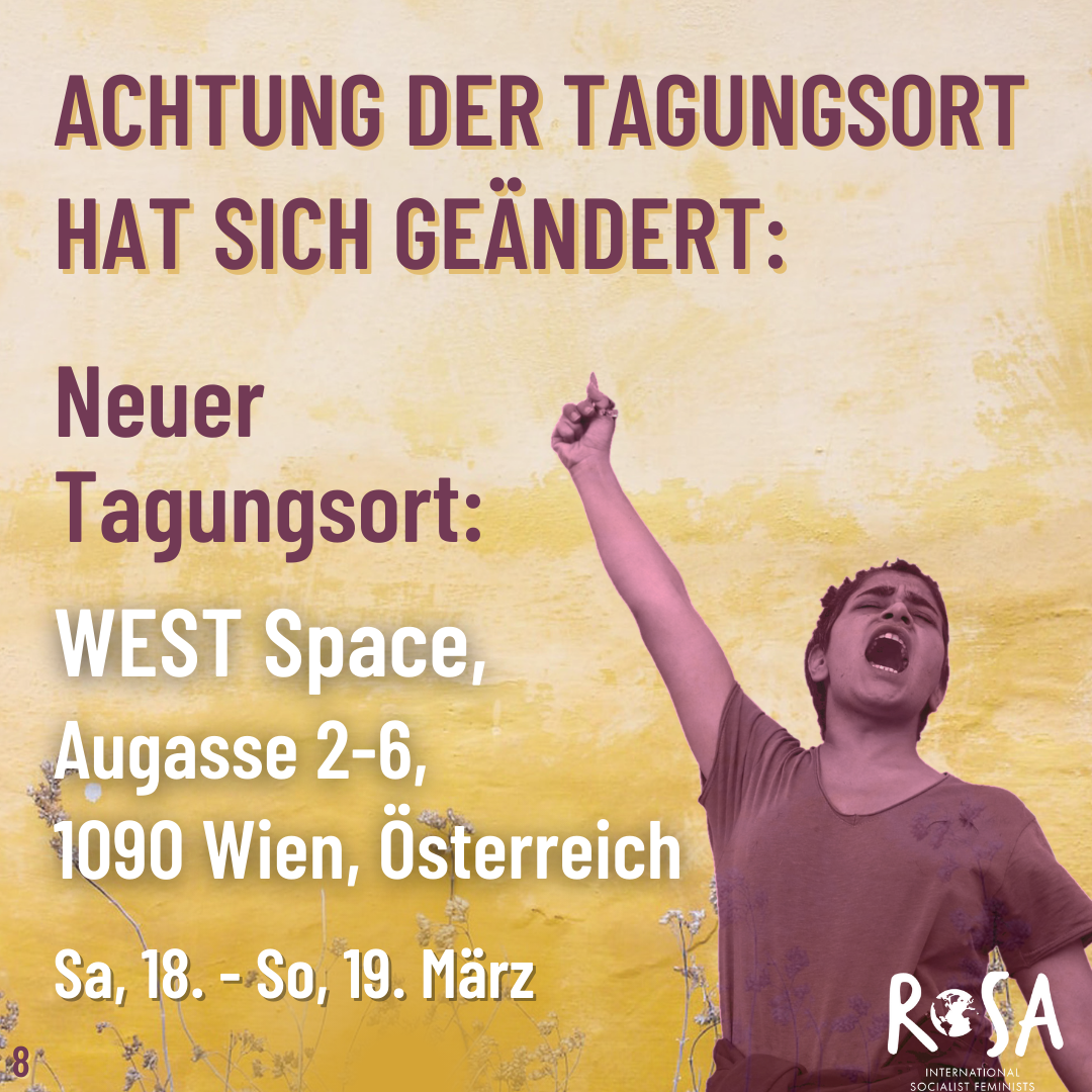 10 Tage nach dem Internationalen Frauenkampftag - dem 8. März 2023, der sich zu einem Tag massiver Kämpfe auf der ganzen Welt zuspitzen wird - werden am 18. und 19. März rund 200 sozialistisch-feministische Aktivist*innen aus allen Kontinenten in Wien zusammenkommen. Melde dich bei uns, um deinen Platz zu reservieren, egal ob du bereits ROSA-Mitglied bist oder ob du nach einer Möglichkeit suchst, Teil unseres so dringenden Kampfes werden willst.