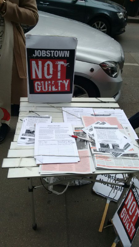 Das ist gerade vor dem Hintergrund des Versammlungsrechts auch in Österreich dringend notwendig. International und auch in Österreich haben sich eine ganze Reihe von bekannten AktivistInnen solidarisch mit der Kampagne Jobstown not Guilty gezeigt. Darunter z.B. Erich Fenninger (Bundesgeschäftsführer der Volkshilfe), Michael Genner (Obmann von Asyl in Not) und GewerkschafterInnen der Auge/UG (Alternative und Grüne GewerkschafterInnen) und die Arbeiterkammerfraktion der Komintern. International unter anderem Angela Davis (amerikanische Sozialistin und Menschenrechtsaktivistin), Jean-Luc Mélenchon (französischer Präsidentschaftskandidat) oder die Partei „Die Linke“.
