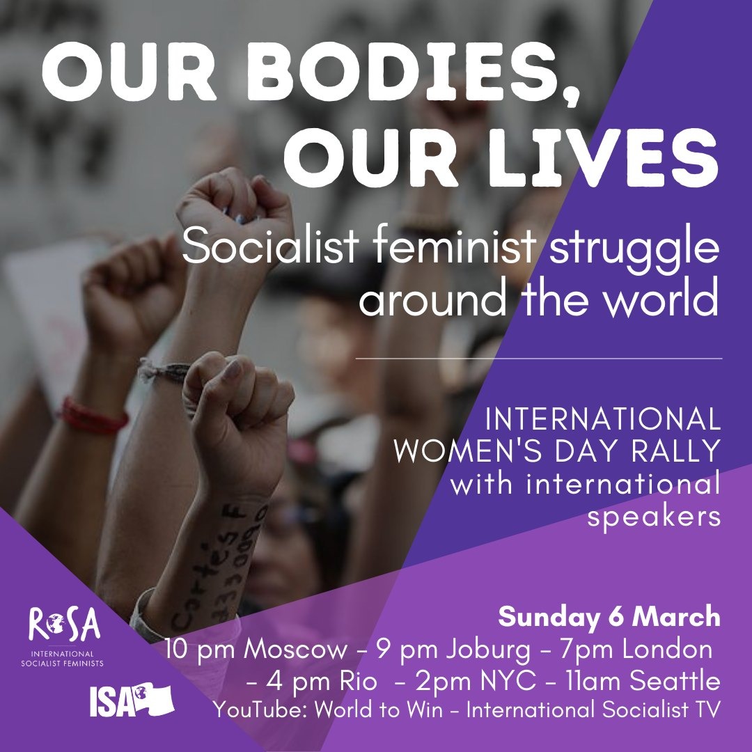 Am Vorabend des 8. März, des internationalen Kampftages der arbeitenden Frauen, rufen Rosa: Internationale Sozialistische Feminist*innen und die Internationale Sozialistische Alternative ISA die Frauen der Arbeiter*innenklasse auf der ganzen Welt dazu auf, gegen Krieg, Ausbeutung, Unterdrückung und das dahinter stehende System aufzustehen: den Kapitalismus!