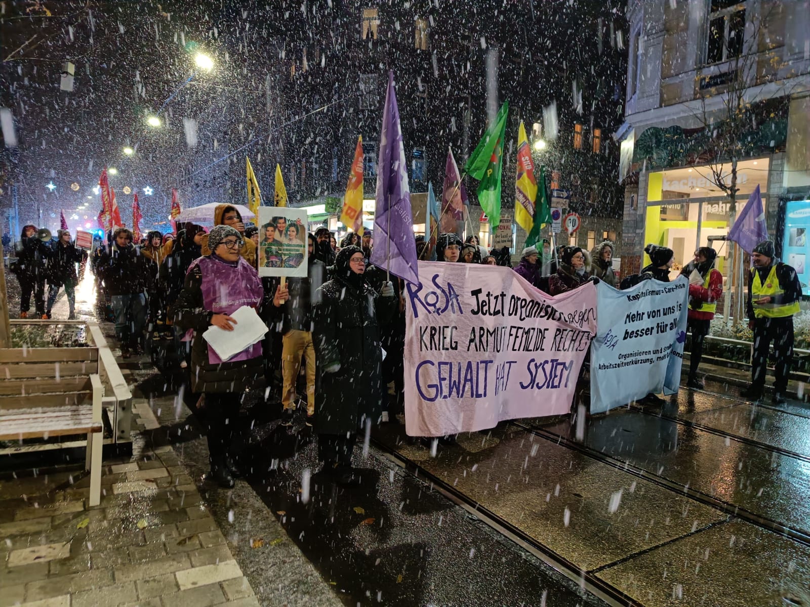 Der 25.November ist ein symbolischer Tag, an dem wir unsere Wut und Trauer auf die Straße tragen, um zu zeigen - wir kämpfen an 365 Tagen im Jahr weiter und organisieren uns, um “Ni una menos” und “Woman Life Freedom” Wirklichkeit werden zu lassen. Mit den Worten von Keshet, ISA- und ROSA- Aktivistin aus Israel, die über den notwendigen gemeinsamen Kampf der israelischen und palästinensischen Arbeiter*innenklasse gegen Krieg und Besatzung sprach: “Dieser Kampf ist ein Kampf für die Befreiung von geschlechtsspezifischer Gewalt, von Armut, von Ausbeutung am Arbeitsplatz, von Unterdrückung. Für die Befreiung vom Kapitalismus”