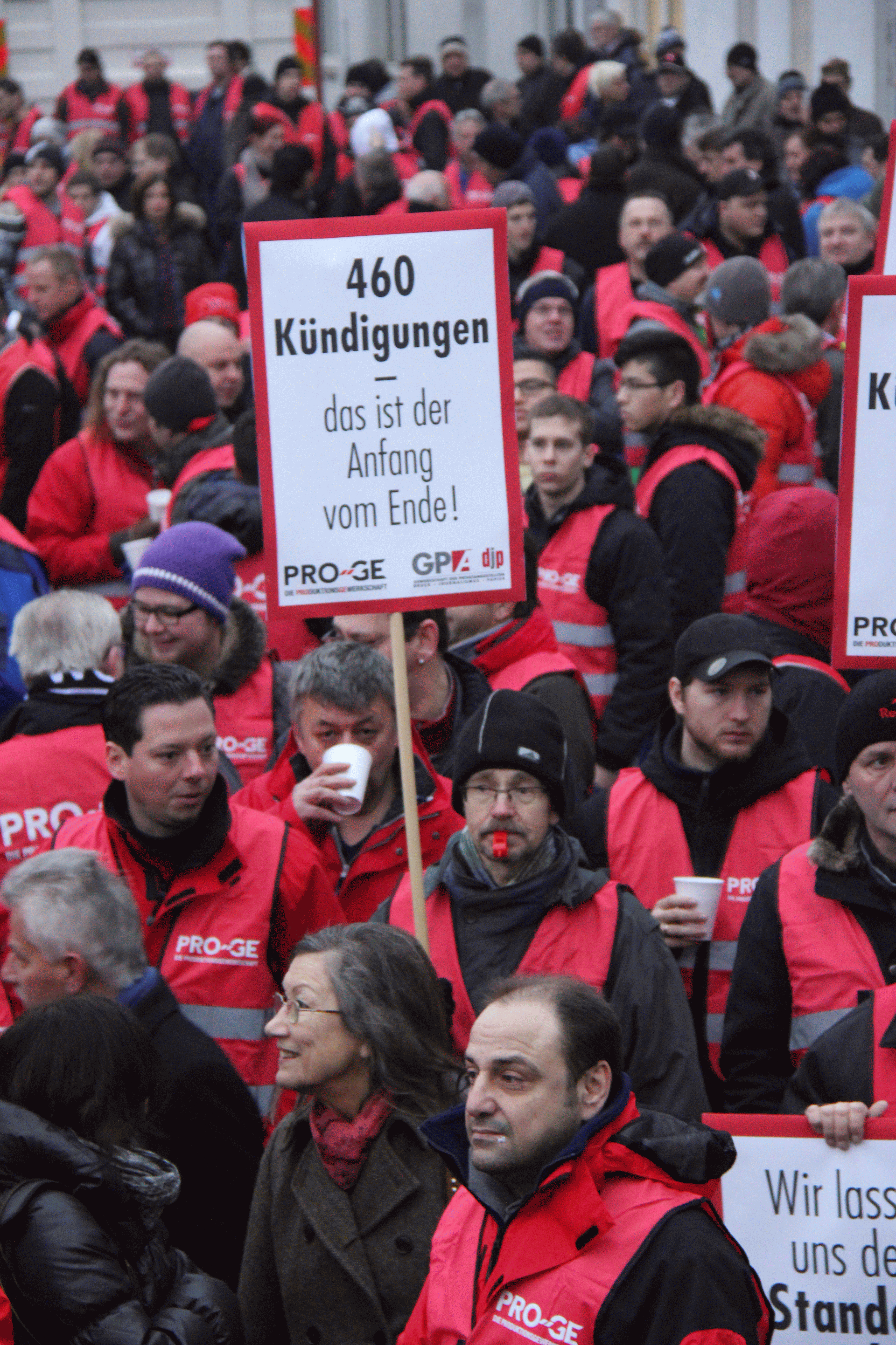 - Solidarität muss Praxis werden. Die Kolleginnen und Kollegen werden von der Gewerkschaft in ihrem Kampf unterstützt. Viele Betriebsrätinnen und Betriebsräte oder auch ganz normale Beschäftigte aus anderen Betrieben, anderen Branchen und anderen Bundesländern haben ihre Solidarität bekundet. Das ist gut so. Nun müssen Taten folgen. Solidaritätsdemonstrationen vor dem Werk z.B.. Angesichts der agressiven Drohungen sind Solidaritätsstreiks mehr als angemessen. Besonders wichtig ist es, die Versuche, die Beschäftigten der verschiedenen Standorte gegeneinander auszuspielen, abzuwehren. Die Hoffnung, Jobs in Mödling zu erhalten, wenn an anderen Standorten gekürzt wird, wird nicht aufgehen sondern dazu führen, dass insgesamt mehr Jobs vernichtet werden.