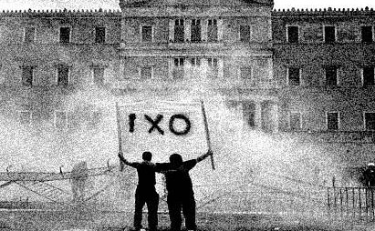 Auf der anderen Seite werden die Organisationen und Strukturen, die zur Reaktion gehören, all ihre Kräfte zusammenbringen. Die Bankiers, Schiffseigner und Reeder, Industrielle, die großen Bauunternehmer, die Massenmedien, das Establishment der EU, die internationalen Organisationen (IWF, EZB etc.) und die multinationalen Konzerne – sie alle werden uns zu „überzeugen“ versuchen, dass wir der Katastrophe entgegengehen, wenn wir mit „nein“ stimmen sollten.