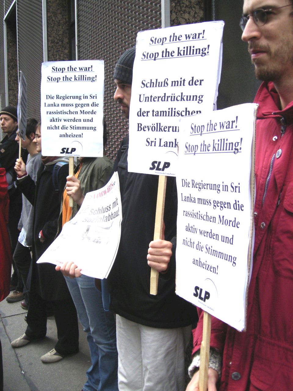 In einer Reihe europäischer Städte fanden an diesem Tag Protestkundgebungen vor den Botschaften Sri Lankas statt und in Columbo selbst wurde ein Protestmarsch organisiert. Die TeilnehmerInnen der Kundgebung in Wien hielten Plakate mit folgenden Slogans