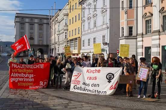 AktivistInnen der SLP und des Bündnisses „Linz gegen Rechts“ protestierten am 28. November für Frauenrechte. Anlass war eine "Lichterkette für die Ungeborenen" durch die Linzer Innenstadt, veranstaltet von den christlichen FundamentalistInnen von "Jugend für das Leben".
