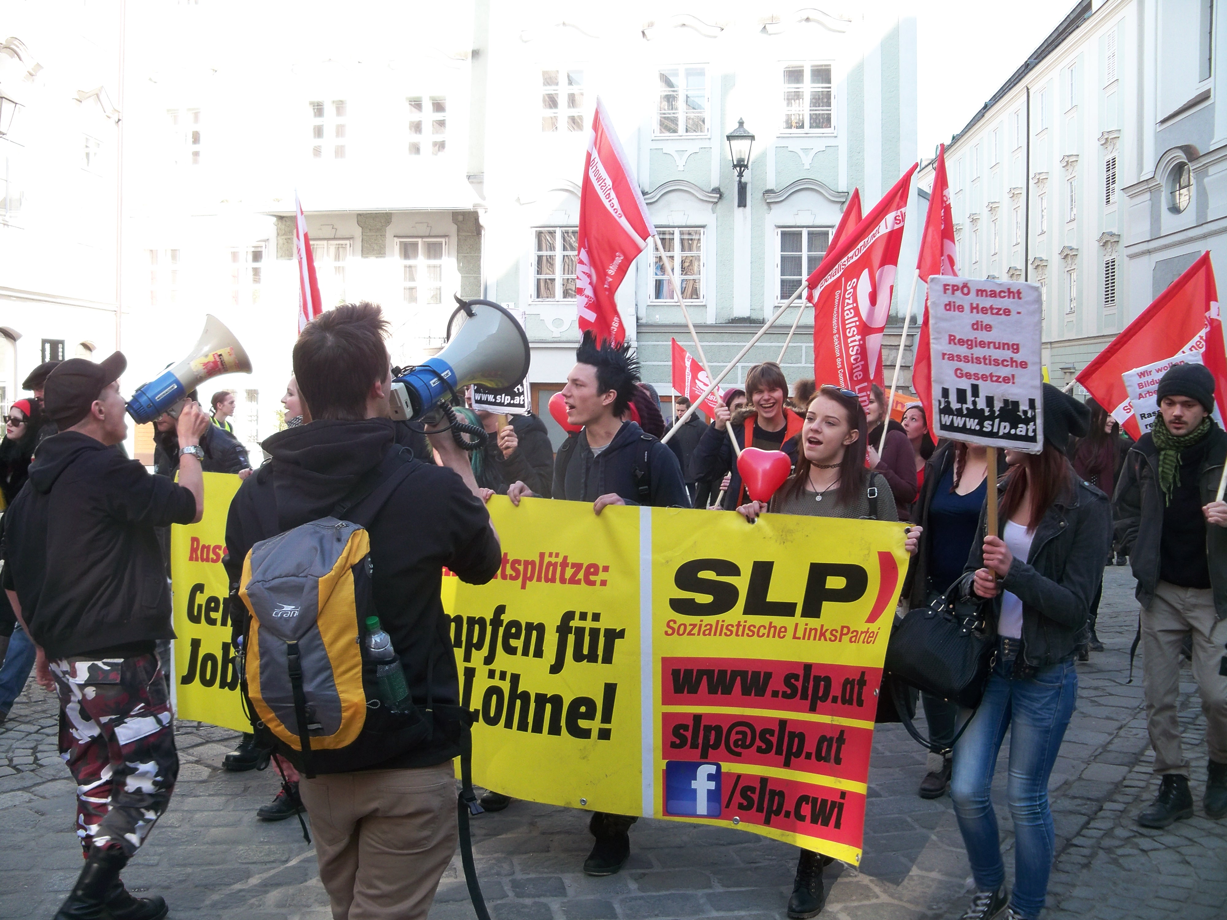 Schon vor einigen Wochen war in Linz ein junger Antifaschist und Aktivist der SLP in einem Lokal beschimpft und verprügelt worden. Die Täter befanden sich unter den PEGIDA-Demonstranten. Letzte Woche wurde eine junge Antifaschistin (ebenfalls SLP-Aktivistin) in Linz von PEGIDA-Demonstranten durch die halbe Stadt verfolgt und bedroht. Es zeigt sich, dass von den Ideen von PEGIDA und von den TeilnehmerInnen der Aufmärsche eine sehr reale Bedrohung und Gefahr ausgeht. Die SLP wird