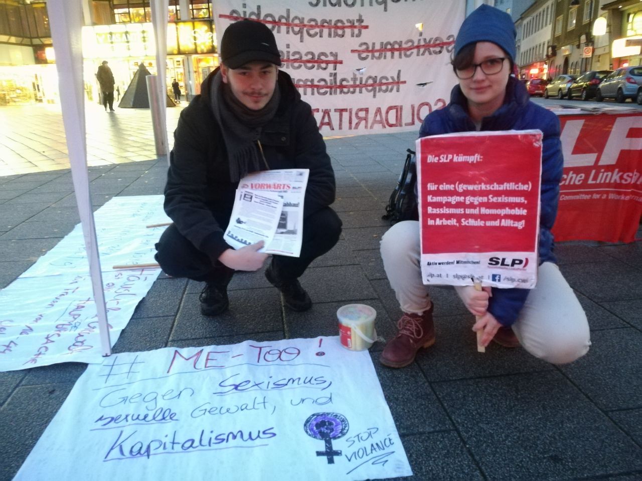 Am 25. November, dem internationalen Tag gegen Gewalt an Frauen, organisierten AktivistInnen der SLP gemeinsam mit anderen in Linz und Wien Proteste unter dem Motto "#Metoo gegen Sexismus und Gewalt an Frauen".