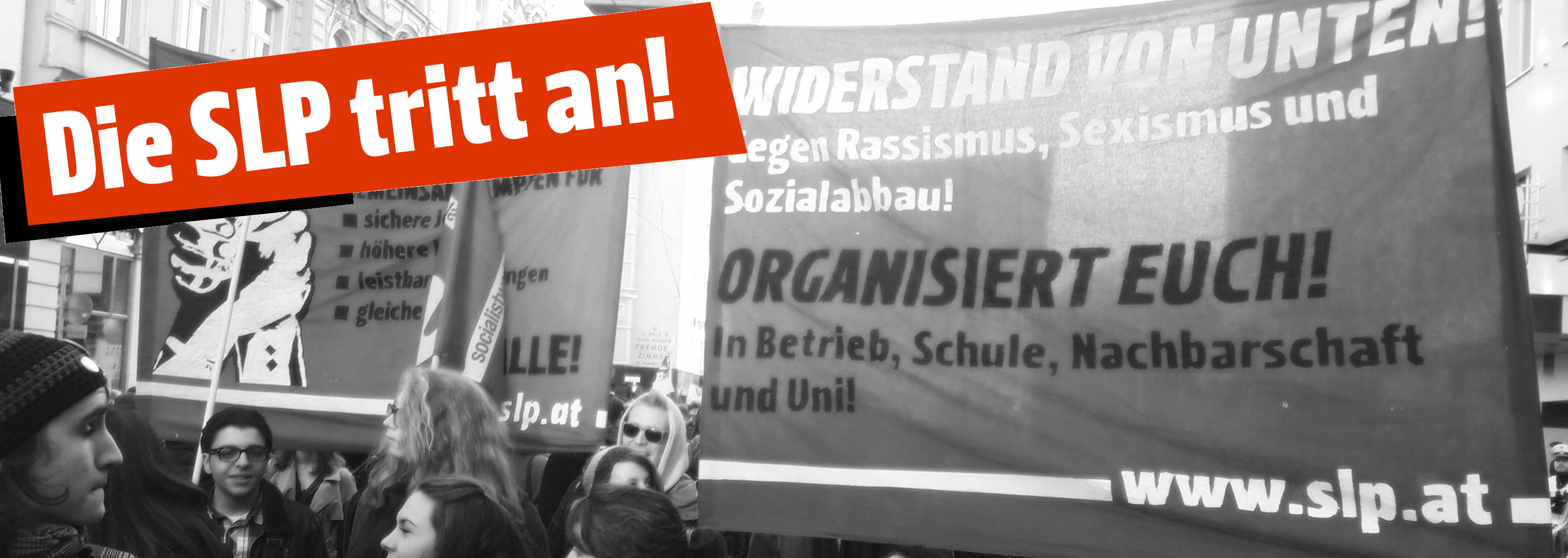 Die SLP tritt an um den Widerstand gegen die kommenden Angriffe nach den Wahlen zu stärken. Sorgen wir gemeinsam dafür, dass beim Wahlkampfauftakt der FPÖ deutlich wird, dass sie eine Partei der Reichen, des Rassismus und des Sexismus ist! Organisieren wir gemeinsam den Widerstand gegen die Kürzungspläne im Gesundheitswesen und bei den Pensionen. Protestieren wir gegen größere Schulklassen und fehlende Jobs. Fordern wir das Geld der Reichen, damit niemand in Armut leben muss.