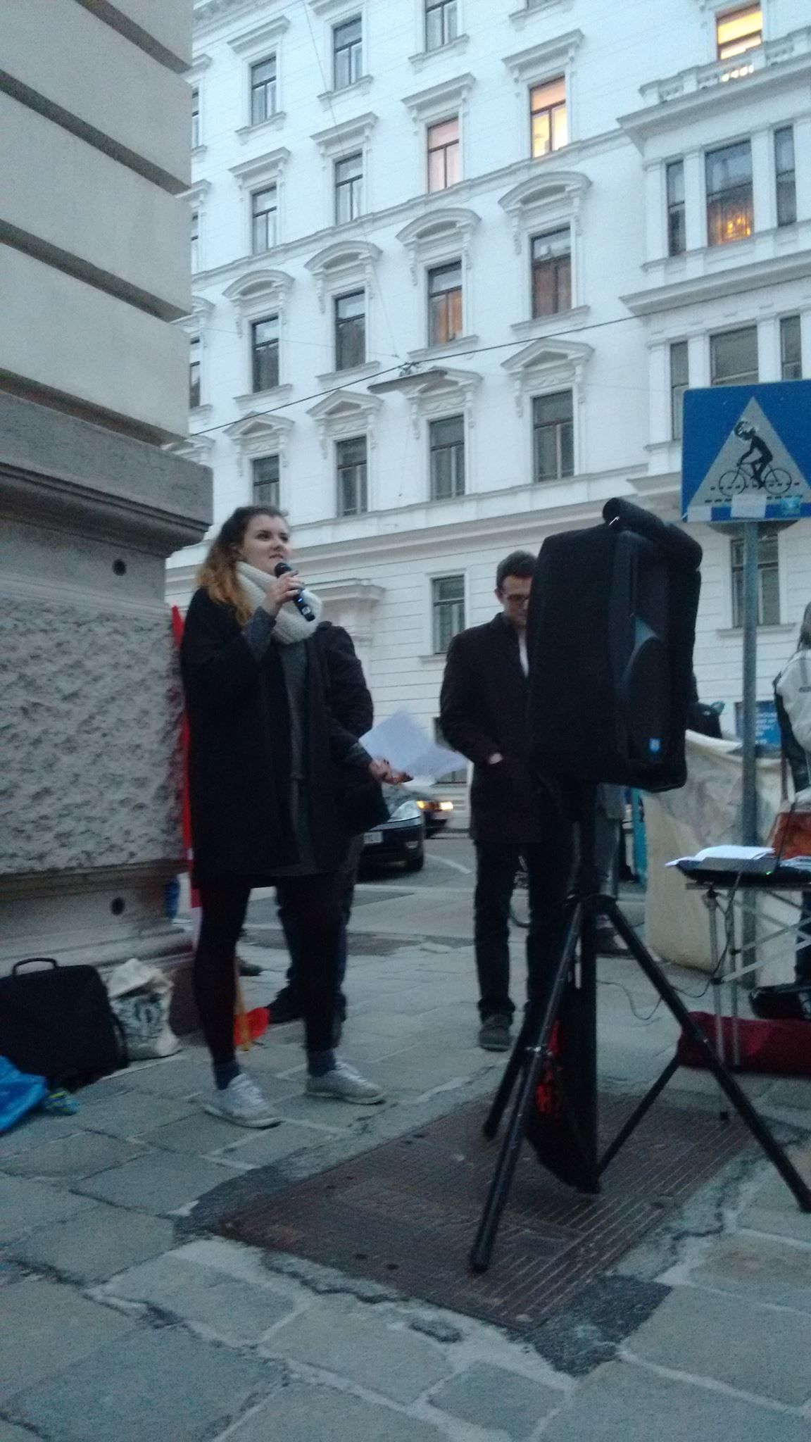 Die Aktion gegen die Veranstaltung der „Katholisch-Österreichischen Landmannschaft“ wurde von einer SLP-Aktivistin ins Leben gerufen und organisiert. Auch die „Offensive gegen Rechts“ (OGR) rief zur Teilnahme auf. Durch zahlreiche Redebeiträge machten unsere AktivistInnen darauf aufmerksam, warum es auch wichtig ist, kleinere Veranstaltungen wie jene am Montag Abend nicht zu ignorieren sondern auch Vernetzung von Austrofaschismus-Verherrlichung ernst zu nehmen.