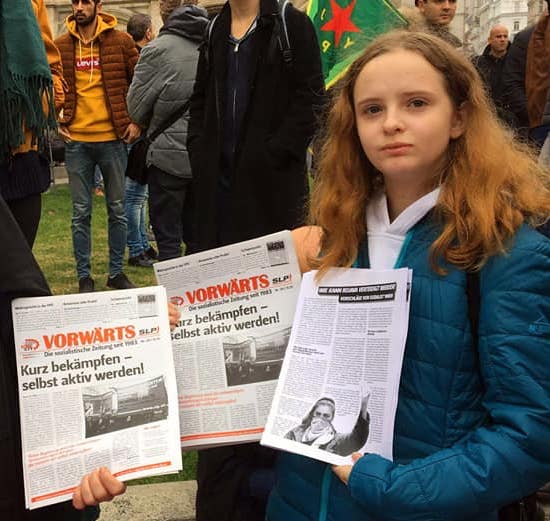Diesen Sommer traf ich die SLP. Ich erfuhr, was Sozialismus ist und sah, dass meine Ideen damit übereinstimmen: Das Ziel ist eine bessere Welt, in der die Menschen nicht ausgebeutet werden und ein gutes Leben führen können. Das geht nur im Sozialismus. Ich wusste schon nach dem ersten Treffen – da muss ich hin. Ich sah, wie die Mitglieder auf den Straßen aktiv sind, wie es jedem und jeder wichtig ist, für die Rechte der Arbeiter*innenklasse zu kämpfen. Und eine Organisation aufzubauen, die den Kampf zur Überwindung des Kapitalismus anführen kann. Meine Partei hab ich gefunden.