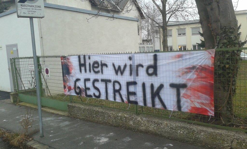 Mittags wieder bei KBA-Mödling. Die Stimmung ist gedrückter, als noch in der Früh. Die KollegInnen sind den ganzen Tag nur herum gesessen. Dieses passive Warten führt zu Frustration. Dabei gibt es so viel zu tun: Diskutieren und gemeinsam entscheiden, welche Forderungen aufgestellt werden. Die nächsten Schritte planen - z.B. eine Demonstration, Solidaritätsdelegationen einzuladen aus anderen Betrieben oder andere Betriebe zu besuchen. Eine Aktion in Mödling z.B. beim Bahnhof oder Einkaufszentrum, um möglichst viele Menschen zu informieren. Eine Streikzeitung oder eigene Streikflugis zu schreiben. Eine Streik-Facebook-Gruppe zu starten. Alles Maßnahmen um selbst die Öffentlichkeit zu informieren und das nicht den Medien zu überlassen, die ja nicht immer auf Seiten der Beschäftigten sind. Dass der Streik weitergehen wird ist für alle klar. Die Drohungen der Geschäftsleitung haben eher zu einer "jetzt erst recht" Stimmung geführt. Diese kommt bereits mit den nächsten Drohungen. Das Gerücht geht um, dass nicht nun gleich der ganze Standort dichtgemacht werden soll, quasi als Rache für den Streik. Doch so leicht ist das nicht. Die KollegInnen sind hochqualifiziert, ihre Arbeit kann nicht einfach über Nacht verlagert werden.