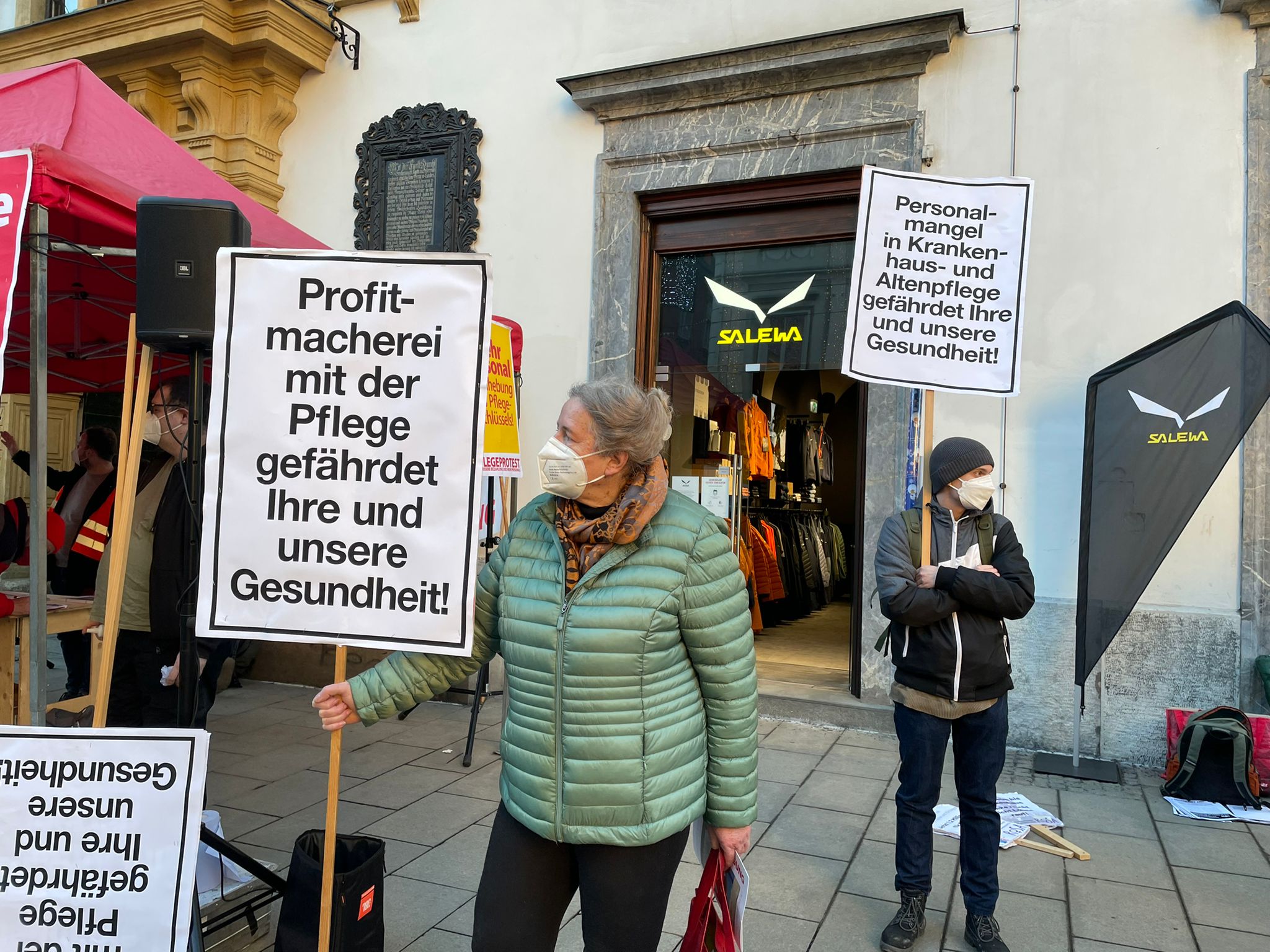 Das Flugblatt der SLP mit Vorschlägen für nächste Kampfmaßnahmen und Streiks kam sehr gut an. Genau darüber diskutierten wir mit vielen der mehrheitlich in der Pflege beschäftigten Teilnehmer*innen. Passend dazu wurde die Einladung zu der gestrigen Online-Veranstaltung: Lehren aus der Berliner Krankenhausbewegung mit einer Aktivistin aus Berlin, die in den dortigen Krankenhausstreiks aktiv war, gerne angenommen. Am folgenden Aktionstag: Gesundheit statt Profite sammelten wir nochmals viele Unterschriften für die Forderung nach einem Corona-Bonus von 205 € pro Monat Pandemie und 20 % mehr Personal.