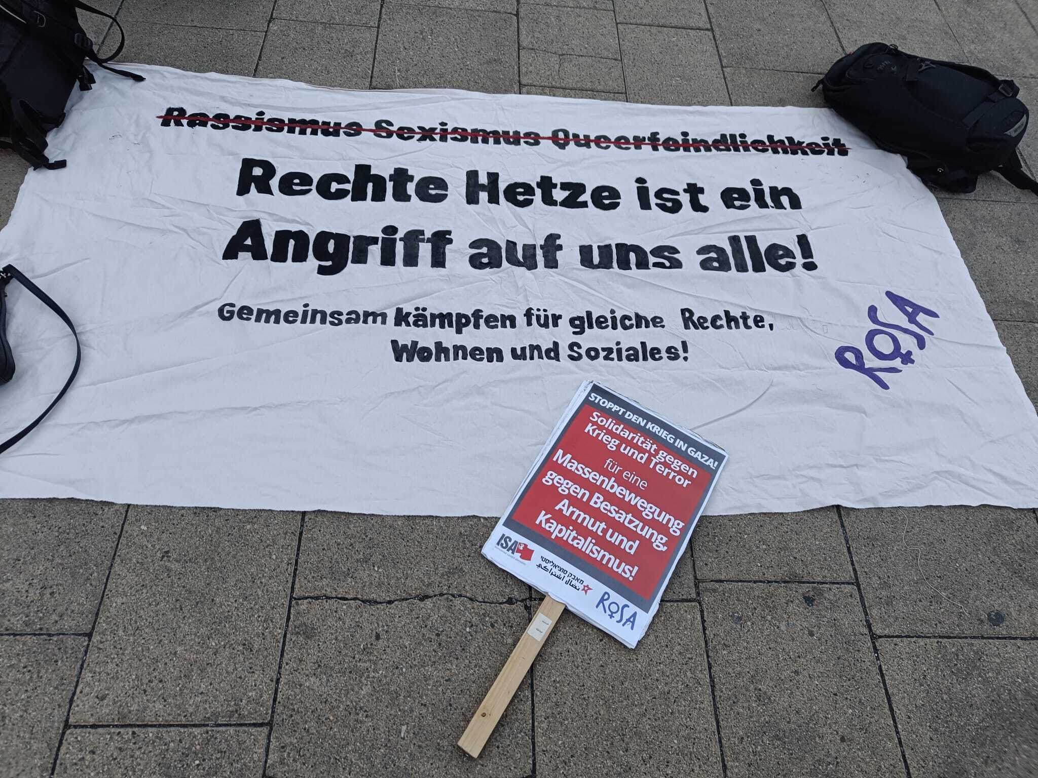 Der einzige Weg Rassismus, Antisemitismus und Unterdrückung zu bekämpfen, ist der Aufbau einer internationalen Bewegung, die klar gegen die Besatzung und die Unterdrückung durch das rechte israelisch Regime kämpft - und sich dabei gegen die Hamas und islamistische Kräfte stellt, die in ihrem Machtbereich gegen jede Opposition vorgehen und Frauen, LGTBQIA+ und Gewerkschaftsaktivist*innen unterdrücken. Der Widerstand von Linken, Feminist*innen und Gewerkschafter*innen muss sich gegen jede Unterdrückung richten, sonst spielt man dem aktuellen Rechtsruck in die Hände. Aktuell bedeutet das besonders sich gegen die Welle an antimuslimischen Rassismus zu positionieren, die pauschale Hetze gegenüber Palästinenser*innen zurückzuweisen und gleichzeitig gegen Antisemitismus aufzutreten.