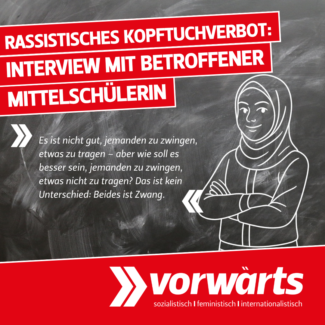 vorwärts interviewte H., Schülerin aus Wien, zu ihren Erfahrungen und ihrer Meinung zum geplanten rassistischen Kopftuchverbot der Regierung. Die Stellungnahme von vorwärts zu diesem Angriff findest du hier: Rassistisches Kopftuchverbot zurückschlagen!