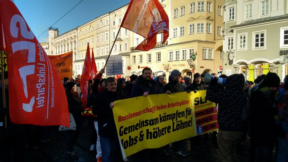 Der Verfassungsschutzbericht schweigt sich zu rechter Gewalt aus. Rechtsextreme Gewaltdelikte fallen in die Kategorie „Sonstige Delikte“ und werden so systematisch unsichtbar gemacht. Fakt ist, dass gerade im Umfeld von Pegida vermehrt Übergriffe auf linke AktivistInnen und MigrantInnen stattfinden. Auf der ersten Kundgebung der Pegida in Wien waren Mitglieder der rechtsextremen „Identitären“, Nazi- Hooligans von „Unsterblich“ und „Eisern Wien“, sowie der Burschenschafter und FPÖ- Funktionär Martin Graf anwesend. Nach der Veranstaltung wurde eine Antifaschistin von mehreren Pegida- Anhängern angegriffen und ihr die Nase gebrochen. Auch in Linz wurde schon vor dem Aufmarsch der Pegida am 8. Februar ein Neo- Nazi mit Baseballschläger von der Polizei angehalten. Auf der Demo fanden sich bekannte Gesichter: Friedrich Tulzer (FPÖ), mehrere Burschenschafter von Arminia Czernowitz, rechtsextreme Hooligans. Ein Mann, der an dem Angriff auf einen SLP-Aktivisten beteiligt war, wurde ebenfalls gesehen. Pegida OÖ-Sprecher Björn Schlager war bei einem Übergriff auf Welser AntifaschistInnen dabei, und eine Aktivistin der SLP wurde einige Tage nach dem 1. Pegida-Marsch und über längere Zeit verfolgt. Nach der 2. Pegida-OÖ Demo prügelten Pegida-Nazis am Linzer Bahnhof auf mehrere SLP-AktivistInnen ein. Doch ihre Einschüchterungsversuche und Drohungen werden nicht funktionieren! Im Kampf gegen Rechte und ihren Terror können wir uns nicht auf Justiz und Polizei verlassen, sondern nur auf unsere Solidarität!