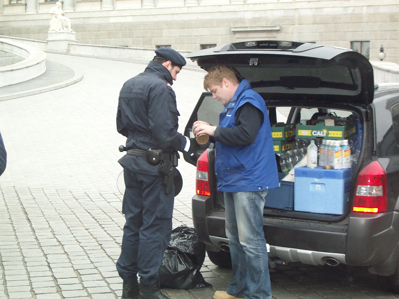 Während bei der ersten Demonstration der „Bürgerinitiative“ rund 1200 Menschen teilgenommen hatten, kamen diesmal nur ein paar hundert. Die von der Polizei kolportierten 700 sind eine deutliche Übertreibung – was vielleicht auch daran liegt, dass die FPÖ-Gewerkschaft AUF zu Beginn der Demonstrationen die Polizei mit Getränken versorgt hat... Trotz massiver Mobilisierung durch die FPÖ – es wurden mehrere Inserate geschalten, jeder Haushalt in der Brigittenau wurde mittels Postwurfsendung „eingeladen“ und FPÖ’ler wurden eigens aus den Bundesländern angekarrt – war die Demonstration ein ziemlicher Reinfall. TeilnehmerInnen aus der Brigittenau gab es kaum, dafür eine Reihe von Neonazis. Aber diese sind angeblich weder Polizei noch FPÖ aufgefallen – obwohl sie ihre Gesinnung offen zu auf dem Körper trugen (z.B. T-Shirts mit 18 = Adolf Hitler bzw. 88 = Heil Hitler).