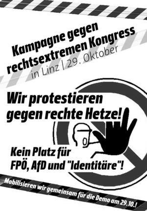 Am 29. Oktober treffen sich VertreterInnen von FPÖ und AfD mit Burschenschaftlern und FaschistInnen wie den Identitären in den Redoutensälen in Linz. Sie reden von „Verteidigung“ und „Rückeroberung“. Passend dazu brüsten sich Identitäre & Co. mit ihren Waffen. Es soll eines der größten rechten Vernetzungstreffen Europas werden und ReferentInnen und TeilnehmerInnen sind brandgefährlich. Im Umfeld solcher Veranstaltungen kommt es stets zu gewalttätigen Übergriffen durch Schlägernazis.