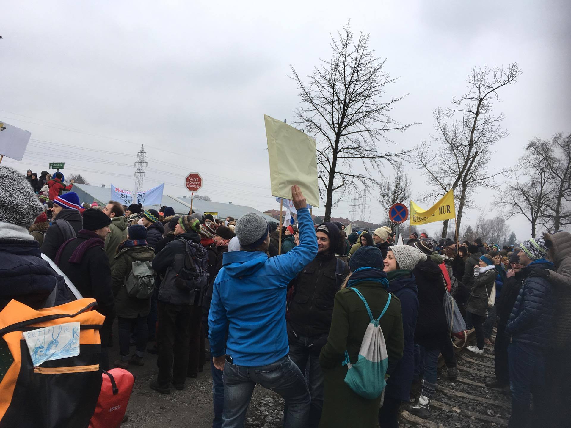 Schon vor Jahren hat sich Widerstand gegen dieses Großprojekt formiert. Mit der Wahl hat die ganze Bewegung aber erst richtig Fahrt aufgenommen und der Beginn der Rodungsarbeiten hat alles extrem beschleunigt. Bisher jeden Samstag 2017 gingen über 1.000 Leute auf die Straße, einen Tag vor der Grazer Gemeinderatswahl waren es sogar 4.000. Das war die größte Demonstration in der Steiermark seit den Protesten gegen die Kürzungen im Sozial- und Gesundheitsbereich 2011. Auch bei der Baustelle selbst wird seit Beginn der Arbeiten ständig protestiert. Beinahe täglich gibt es Kundgebungen vor Ort und immer wieder kommt es zu Blockaden der Bauarbeiten. Trotz der eisigen Temperaturen und der Repression von Seiten der Polizei und der privaten Securitys, wurden schon zwei Protestcamps errichtet und die Solidarität der Bevölkerung ist beeindruckend. Ständig bringen AnrainerInnen Nahrungsmittel und anderes, was im Camp benötigt wird vorbei, um die AktivistInnen zu unterstützen.
