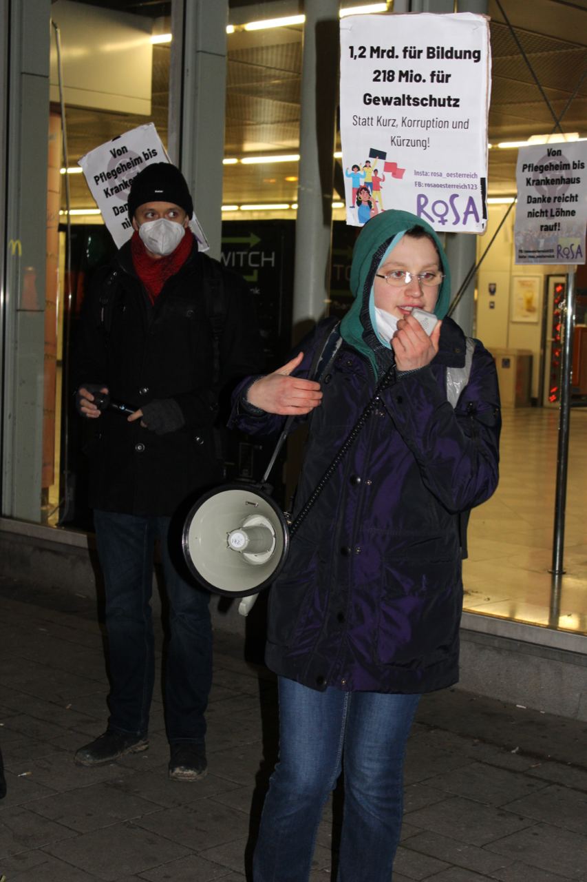 ROSA in Österreich hat in Wien, Linz und Graz Proteste organisiert und sich an Demonstrationen beteiligt. In den vergangenen Tagen haben sich Frauenmorde dramatisch gehäuft, zuletzt am Abend des 25.11. in Innsbruck. Wir haben als ROSA in den vergangenen Wochen für die Protestaktionen stark mobilisiert: An Schulen, in Nachbarschaften und mit Aktionen und Kundgebungen auf der Straße. Wir haben betont, dass es im Kampf gegen Gewalt an Frauen keinen Verlass auf die Regierung und auf die etablierten Parteien geben kann. Die vergießen gerne Krokodilstränen, sind aber nicht bereit, die notwendigen Gelder für Frauenhäuser, Gewaltschutz, Bildung, Gesundheit, Pflege und Soziales auszugeben. Deshalb ist es notwendig, dass wir uns selbst organisieren und eine sozialistisch-feministische Bewegung aufbauen, die jede Form von Gewalt an Frauen und die Ursachen dahinter zurückdrängen kann.