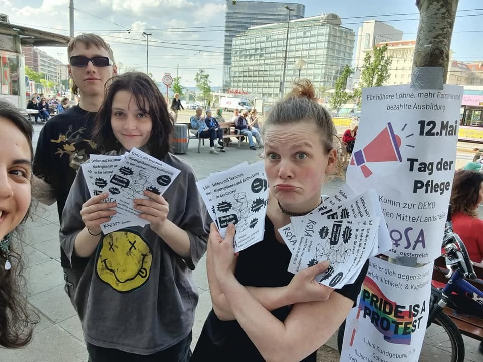 ROSA Wien hat aufgrund persönlicher Erfahrung von Aktivist*innen um das Thema Sexismus und Arbeitsbedingungen in der Gastro eine online-Umfrage gestartet, Straßenaktionen und Flyerverteilungen organisiert. Die Reaktionen waren eindeutig: Es gibt ein großes Bedürfnis unter Beschäftigten und Kund*innen, gegen Sexismus und Ausbeutung aktiv zu werden. Die Erfahrungsberichte zeigen die ausbeuterischen und unsicheren Arbeitsverhältnisse: Egal ob in der Systemgastro (McDonalds, Starbucks etc.) oder im kleinen Beisl. Eine Kollegin schrieb:
