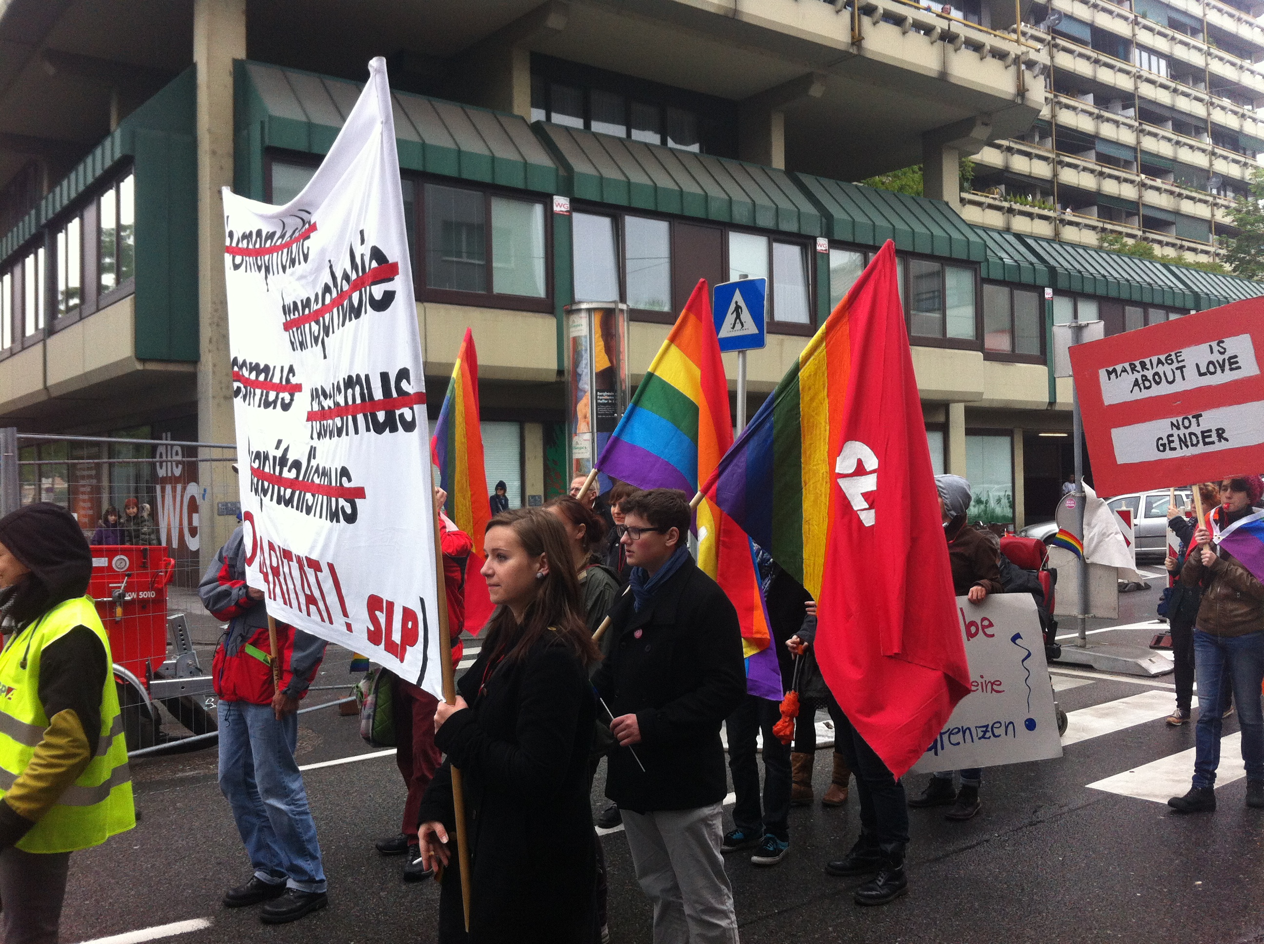 Die SLP war wie schon beim ersten Walk4IDAHO im vergangenen Jahr mit dabei. Betont wurde die Notwendigkeit des Schulterschlusses der verschiedenen Bewegungen. Im Flugblatt hieß es: „Der Kampf für mehr Rechte von Homo- und Transsexuellen darf nicht von gesellschaftlichen Fragen getrennt werden. Nur ein gemeinsamer Kampf für soziale Verbesserungen und mehr Rechte für Homo- und Transsexuelle wird erfolgreich sein.“