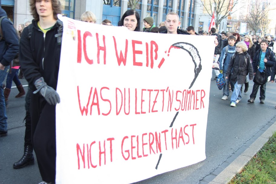 Bis heute ist die autoritäre Struktur der Schule nicht überwunden worden. Die meisten fortschrittlichen „Reformen“ sind als Ideen schon seit teilweise über 100 Jahren bekannt. So wurde von der SPD bereits 1902 die Einheitlichkeit und Weltlichkeit des Schulwesens gefordert. Auch die Verbindung von Theorie und Praxis stand auf der Agenda. Die Schule ist aber Ausdruck der kapitalistischen Welt, in der wir leben. Deshalb wurden solche Reformen nie bis zum Ende durchgeführt. Nicht für die Schule lernen wir, sondern fürs Leben – doch viel weniger Inhalte, als Ducken, Gehorchen und Brav sein. Sie bereitet uns so aufs Funktionieren in einer Klassengesellschaft vor. Was als SchülerIn der/die LehrerIn ist, wird später der Boss. Eine wirklich andere Schule braucht daher auch eine wirklich andere Welt.
